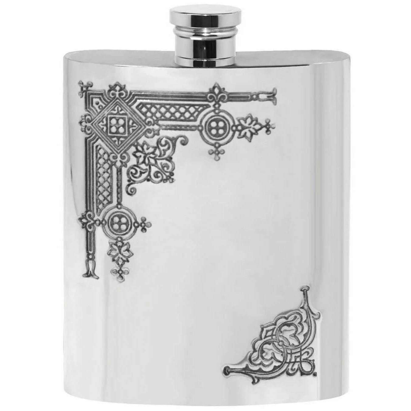 English Pewter Company 6oz Gothic Hip Flask - Silver