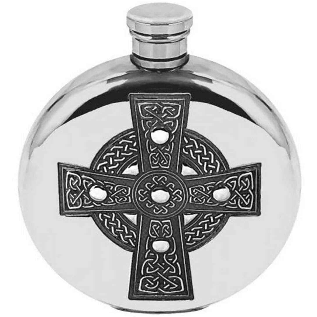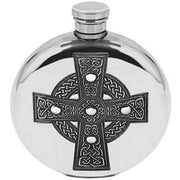 English Pewter Company 6oz Round Celtic Cross Flask - Silver