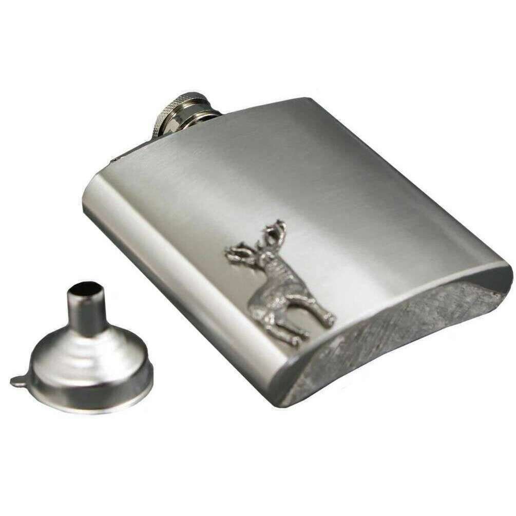 Perfect for men or women is this English Pewter Company silver 6oz stainless steel stag hip flask, it is also made from stainless steel and pewter. It measures 11.5cm(height). English Pewter Company have made this 6oz stainless steel stag hip flask in Britain. All the hip flasks come complete with english pewter company packaging. The English Pewter Company 6oz Stainless Steel Stag Hip Flask - Silver will make a great companion for special occasions, storing your favourite spirit discreetly allowing you to swig at your convenience. The hand cast pewter detail offers stunning detail and the curve in its design makes it function to sit at your hip in your pocket.