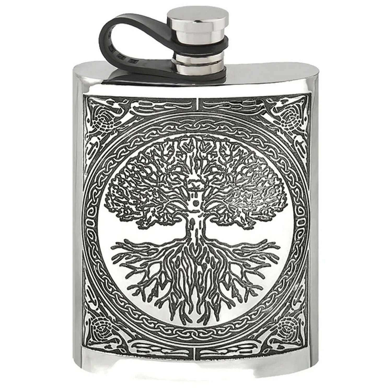 English Pewter Company 6oz Tree Of Life Flexi Cap Hip Flask - Silver