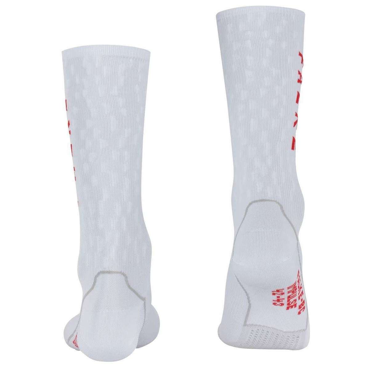 Using white 54% polyester (49% recycled), 41% polyamide and 5% elastane, these bc impulse peloton socks by Falke are perfect for men or women and a must have. Also the white socks are designed in a plain pattern, It is recommended to wash at 40 degrees to keep these socks in good condition. All the socks come complete with falke sock tags. The Falke BC Impulse Peloton Socks - White offer an innovative mesh kit that stimulates the receptors on the ball of the feet to minimise numbness, while keeping your feet cool and dry. These cycling socks have ultralight cushioning for direct control and speed. Thanks to the impulse technology, you have improved dynamics and better balance. With eye catching coloured strokes in the shaft, these socks are complete with optimal fit with toe and sole area adapted to each foot.