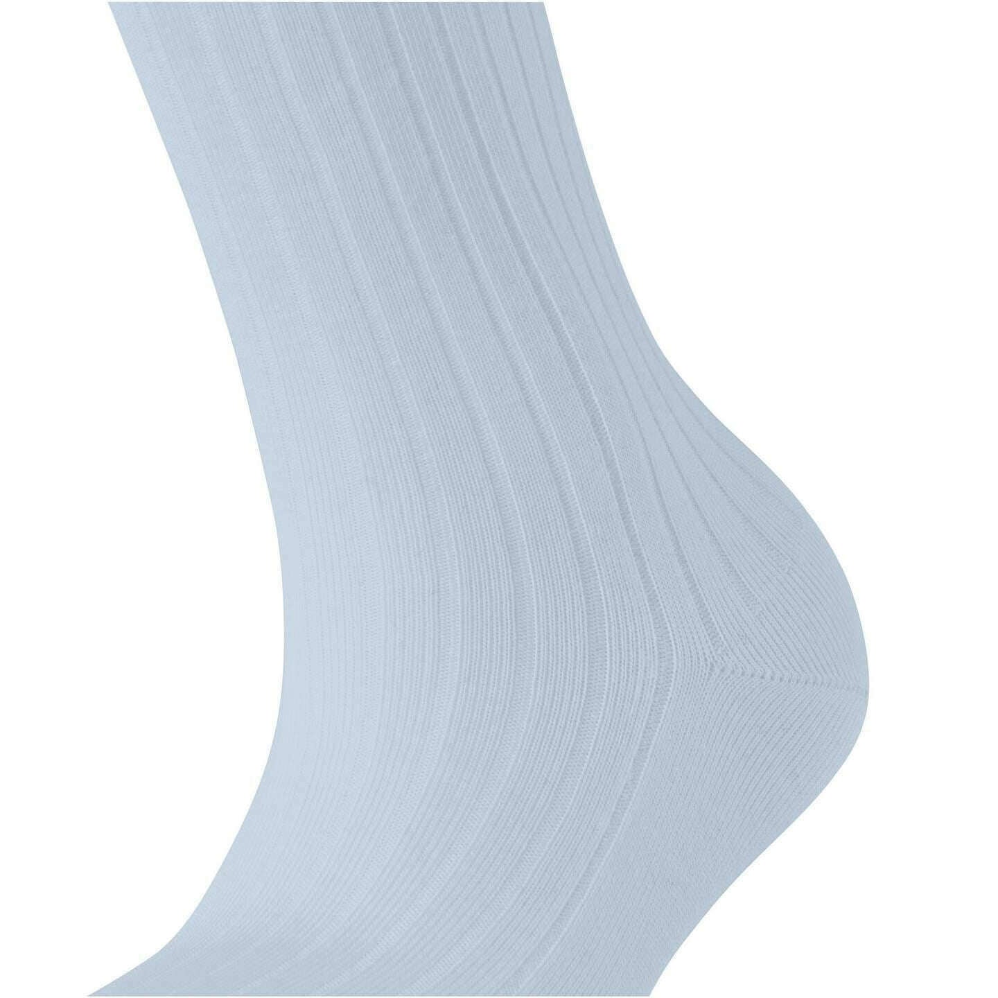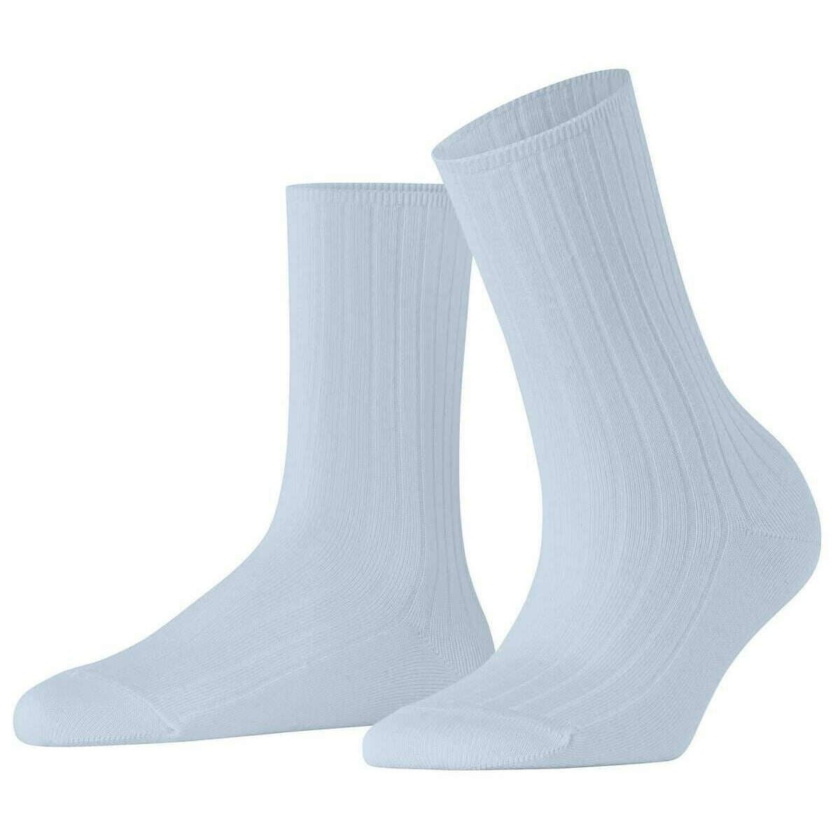 These women's cotton rib socks by the brand Falke are made from 90% cotton, 9% polyamide and 1% elastane and are showcased in blue. Also the light blue socks are designed in a plain pattern, It is recommended to wash at 40 degrees to keep these socks in good condition. All the socks come complete with falke tags. The Falke Cotton Rib Socks - Light Blue combine a trendy ribbed design with the soft, skin friendly comfort of FALKE WE CARE COTTON. Their modern, casual look fits seamlessly into contemporary street style outfits, making them a versatile everyday essential. Crafted from sustainable, socially responsible, and traceable cotton, they offer comfort that lasts throughout the day. Reinforced stress zones provide optimal durability, ensuring they remain reliable wear after wear. Finished with the signature FALKE Perfect Fit, the FALKE Cotton Rib socks deliver a stylish blend of modern design, long lasting quality, and sustainable cotton comfort making them the perfect companion for daily use.