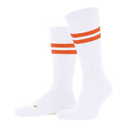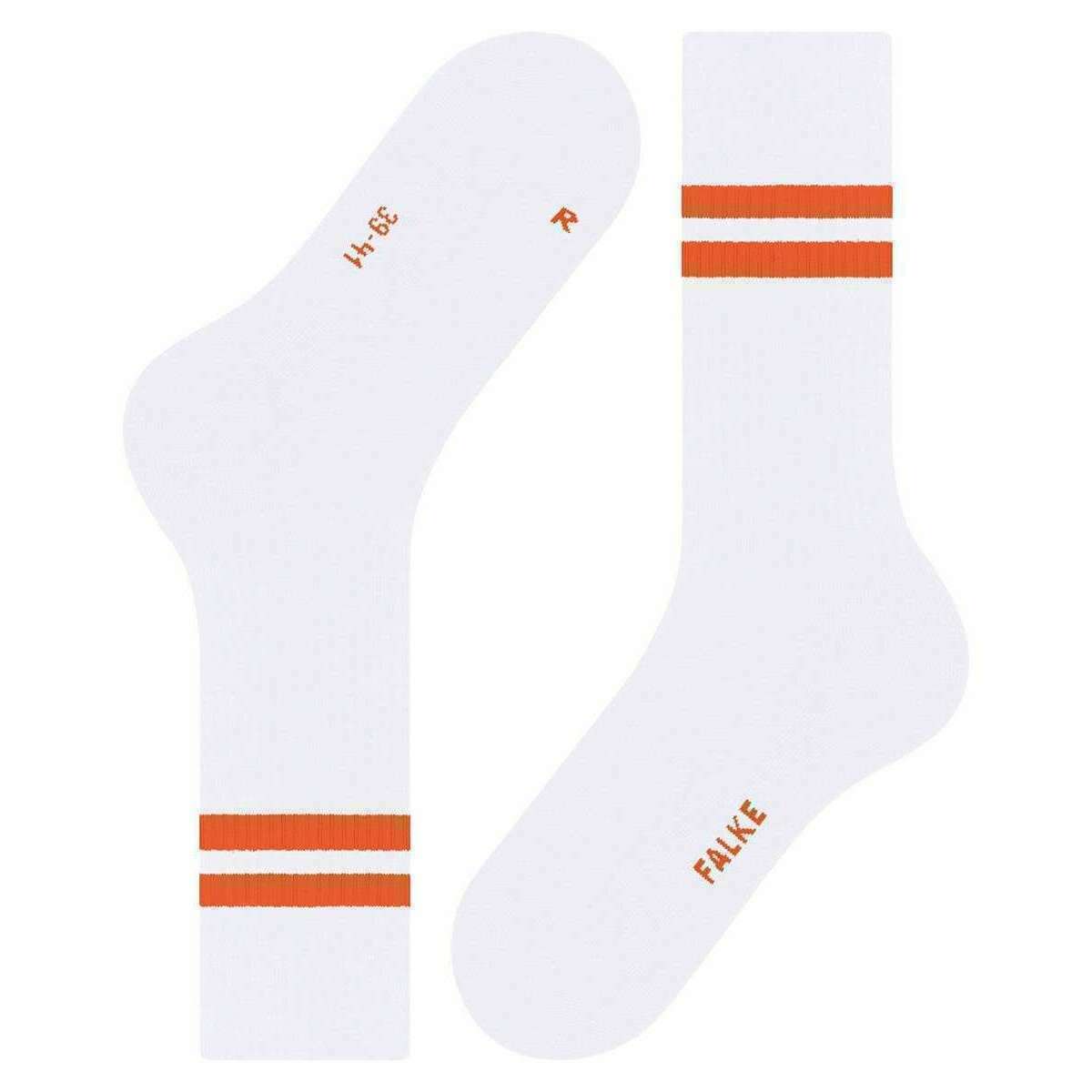 Perfect for men or women are these Falke white/hibiscus orange dynamic socks, they are also made from 81% cotton, 16% polyamide and 3% elastane. Also the white/hibiscus orange socks are designed in a plain pattern, It is recommended to machine wash at 40 degrees and do not tumble dry. to keep these socks in good condition. All the socks come complete with falke sock tags. The Falke Dynamic Socks - White/Hibiscus Orange are fashionable robust socks for all your sporty, casual or modern athleisure outfits. With the classical retro rings, these socks make a statement on their own. Made from skin friendly cotton these unisex socks feel snug against your feet. The slightly cushioned sole allows for a comfortable all-day wear. Complete with anatomic Falke fit these socks are perfect for all sporty occasions.
