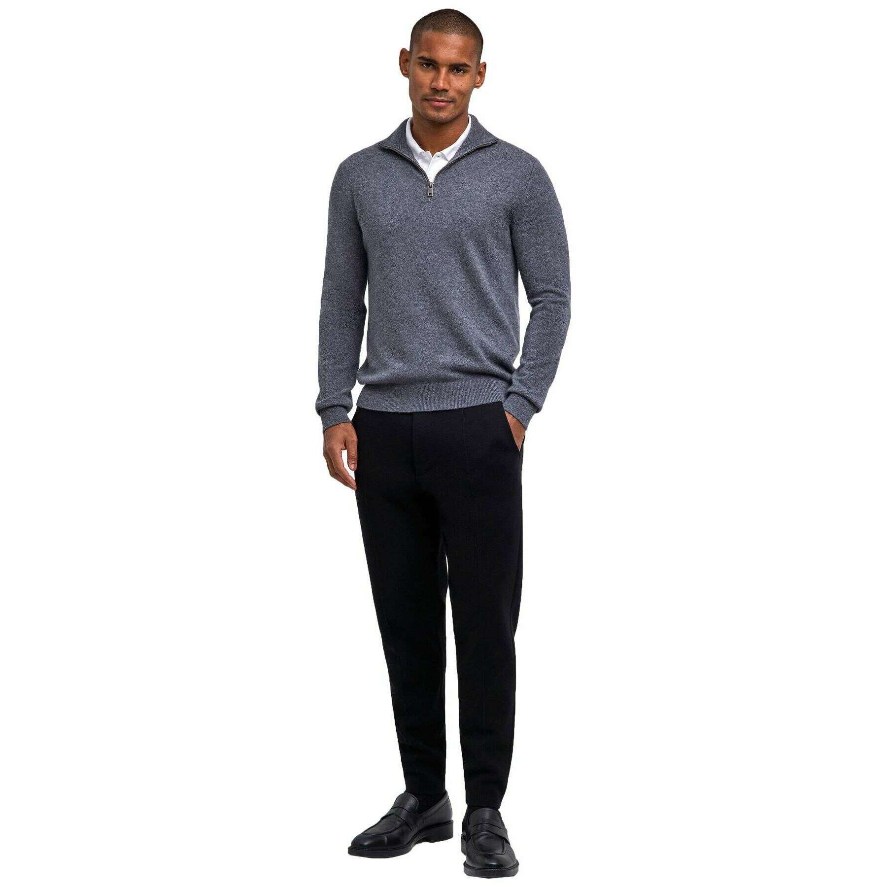 Falke Pure Cashmere Half-Zip Sweater - Dark Grey Heather