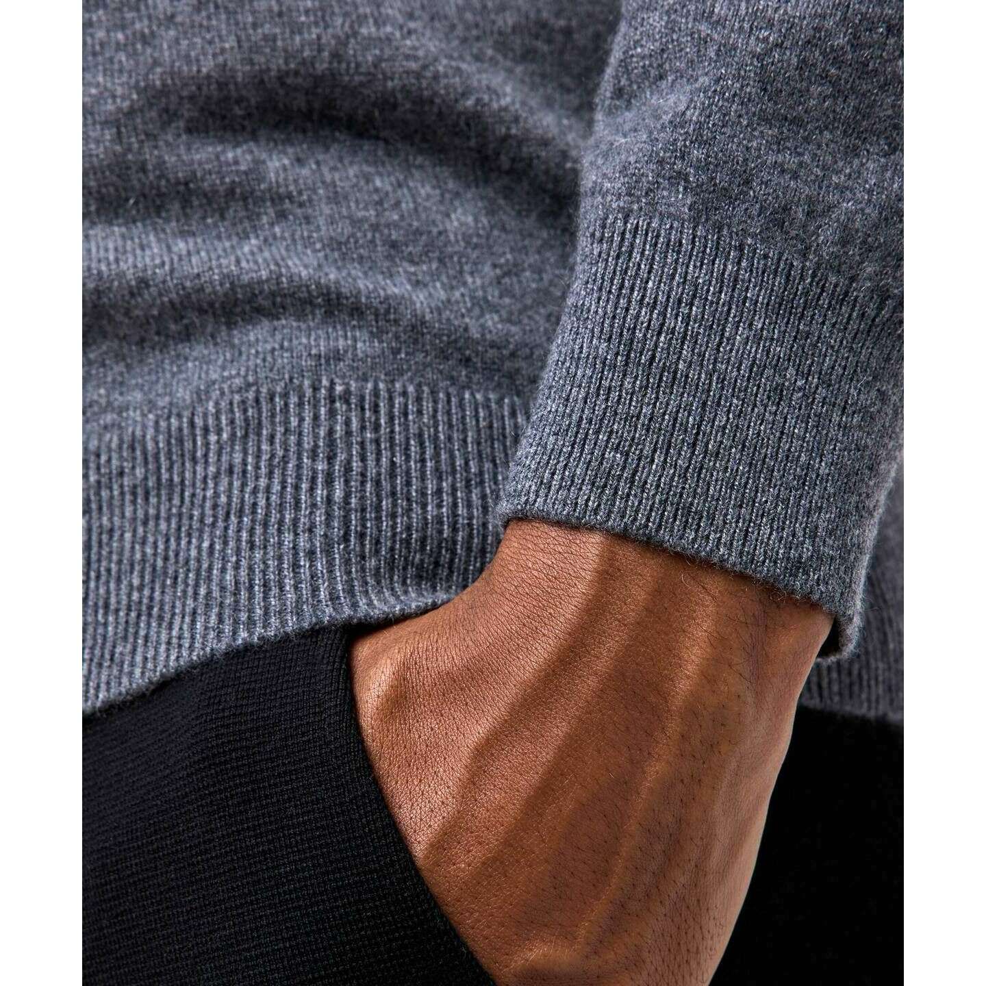 Manufactured from 100% cashmere is this dark grey heather men's pure cashmere half-zip sweater by the designer Falke. Also the dark grey heather jumper is designed in a plain pattern, It is recommended to machine wash at 30 degrees to keep this jumper in good condition. All the jumpers come complete with falke packaging. The Falke Pure Cashmere Half-Zip Sweater - Dark Grey Heather emits luxury and sophistication for an everyday wear that will make the perfect addition to your wardrobe. Crafted from cashmere offers a super-soft touch, warmth and a breathable finish perfect for a year-round piece. The classic yet simple design allows this sweater to be styled in endless ways making it timeless and versatile. The regular fit, ribbed cuffs and hems and French shoulders combine for a completed look. Its fully fashioned workmanship guarantees a precise fit and durability, to enjoy for years to come.
