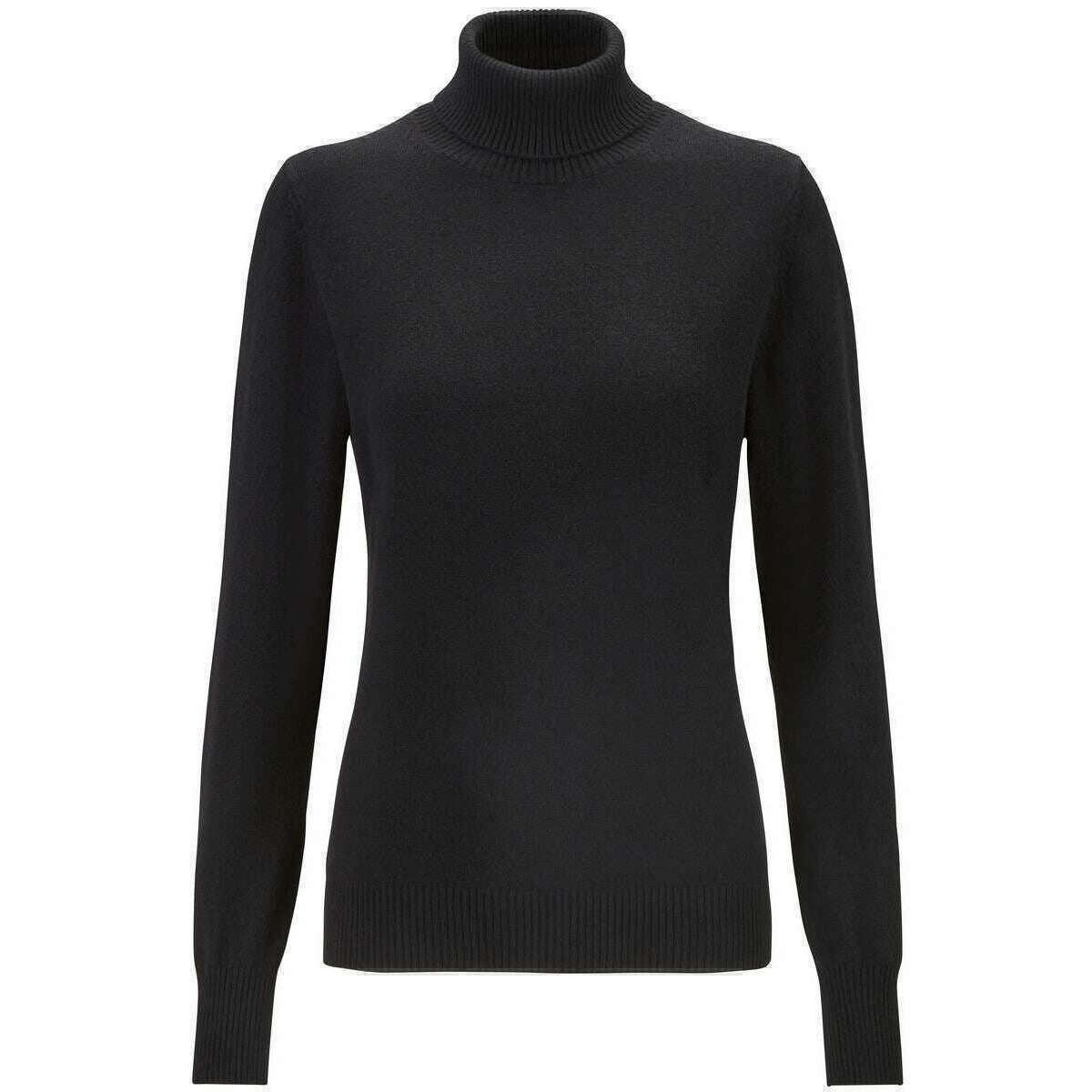 This well made women's pure cashmere roll neck sweater from Falke comes in a black colour and is manufactured from 100% cashmere. Also the black jumper is designed in a plain pattern, It is recommended to machine wash at 30 degrees to keep this jumper in good condition. All the jumpers come complete with falke packaging. The Falke Pure Cashmere Roll Neck Sweater - Black is needed in any woman s collection due to the versatile design allowing this piece to be styled casually or smart depending on the occasion. Crafted from high-quality cashmere provides ultimate comfort that ensures thermal insulation for those colder days and natural temperature regulation perfect for keeping warm whilst not overheating. The regular fit with a roll neckline offers a classic timeless look that will stay in fashion and can be worn for many years to come thanks to the high-quality and durable material.