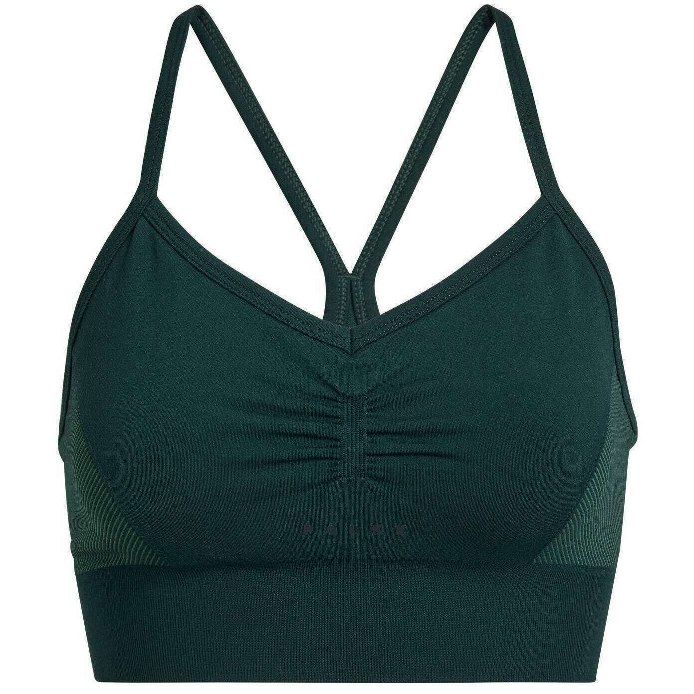 This women's training studio sports bra by the brand Falke is made from 55% modal, 38% polyamide (recycled) and 7% elastane and is showcased in green. Also the holly green spots bra is designed in a plain pattern, It is recommended to machine wash at 30 degress to keep this spots bra in good condition. All the sports bras come complete with falke packaging. The Falke Training Studio Sports Bra - Holly Green will provide you with great comfort and support during low-intensity work outs. This bra will not only keep you dry and cool due to the breathable fabric but will also flatter your silhouette with the knit patterns enhancing your curves. Featuring no pads in the cups adds to the natural wear without causing bulk and an abnormal look.