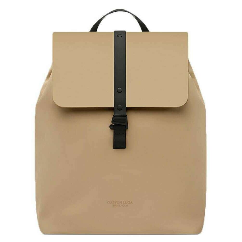 Manufactured from 61% recycled polyester with thermoplastic polyurethane, 12% recycled polyester with polyurethane and 27% recycled polyester lining is this latte beige unisex dash bucket backpack by the designer Gaston Luga. It measures 32cm(height) x 25.5cm(width) x 15cm(depth). It is recommended to use a simple damp cloth to keep this bag in good condition. All the bags come complete with gaston luga tags. The Gaston Luga Dash Bucket Backpack - Latte Beige is crafted from high-quality materials, ensuring durability and water resistance. Designed with ergonomics in mind, the Däsh Backpack prioritizes comfort during extended wear. Padded shoulder straps and back panels offer support and reduce strain, making it ideal for long commutes or travel. Designed to fit up to 11"-13" laptops, this backpack blends functionality with contemporary style, appealing to a wide range of tastes.