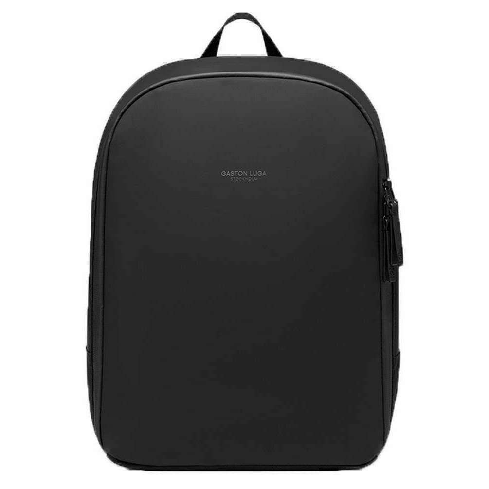 Brought to you by the brand Gaston Luga, this black unisex dash daily 14" backpack is made from 71% recycled polyester with polyurethane coating and 29% recycled polyester lining. It measures 37cm(height) x 25cm(width) x 13cm(depth). It is recommended to use a simple damp cloth to keep this bag in good condition. All the bags come complete with gaston luga tags. The Gaston Luga Dash Daily 14" Backpack - Black is a sleek and versatile companion designed for modern lifestyles. Offering ample storage this backpack comfortably fits a 14-inch laptop in a dedicated padded compartment, keeping it secure and protected. The inner zipped pocket provides organization for all your essentials while the adjustable shoulder straps with padding ensure comfort during extended wear. Whether you prioritize organization, comfort, or aesthetics, this backpack delivers on all fronts, catering to the demands of modern urban life.