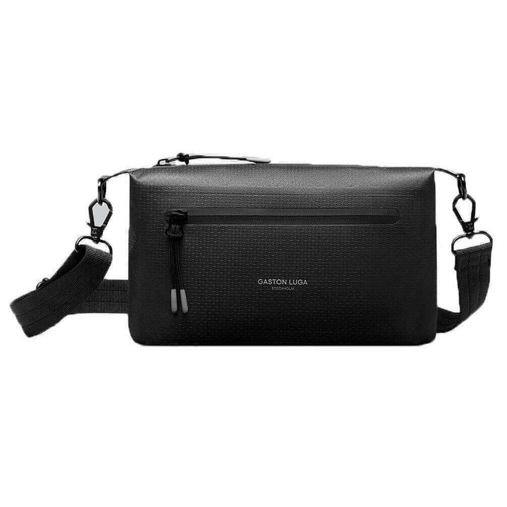 Brought to you by the brand Gaston Luga, this black unisex lightweight duoseal crossbody bag is made from 100% recycled polyester. It measures 15cm(height) x 25cm(width) x 7.5cm(depth). It is recommended to use a simple damp cloth to keep this bag in good condition. All the bags come complete with gaston luga tags. The Gaston Luga Lightweight DuoSeal Crossbody Bag - Black is spacious enough for all your daily essentials. With 2 outer pockets and 1 inner pocket, this bag offers quick access to frequently used items. Crafted with sustainability and durability in mind, this crossbody bag combines eco-friendly materials with practical features. The adjustable shoulder strap allows for a customizable fit, enhancing comfort during extended use and is an ideal choice for those seeking a compact, stylish, and sustainable bag for everyday use.