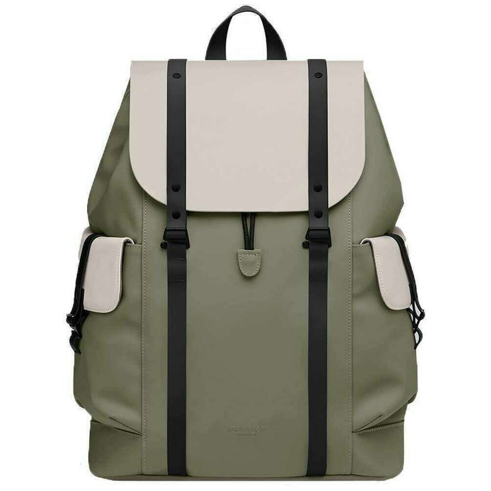 Perfect for men or women is this Gaston Luga cloud cream/sage splash 16" utility backpack, it is also made from 100% recycled polyester. It measures 36cm(height) x 35cm(width) x 13.5cm(depth). It is recommended to use a simple damp cloth to keep this bag in good condition. All the bags come complete with gaston luga tags. The Gaston Luga Splash 16" Utility Backpack - Cloud Cream/Sage is a versatile and eco-conscious backpack designed for modern urban living. Designed to hold most 11"-16" laptops, this bag is equipped with cushioned and breathable back support for enhanced comfort during extended use. To facilitate easy organization of essentials this bag features two outer pockets and one inner zippered pocket. This Splash utility backpack stands out as a premium choice for those seeking a blend of sustainability, functionality, and modern design.