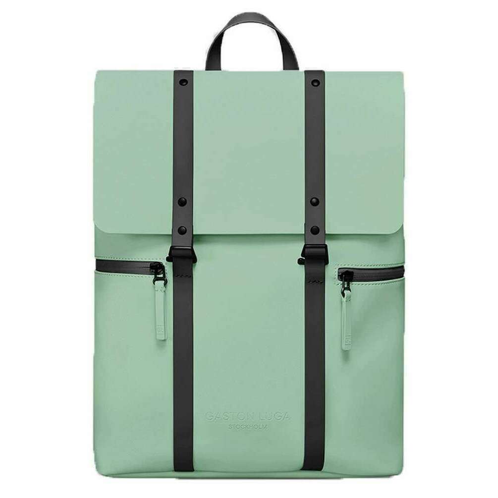This unisex splash 2.0 13" backpack has been made from 100% recycled polyester, featured in a green colour and is from the brand Gaston Luga. It measures 40cm(height) x 28.5cm(width) x 12.5cm(depth). It is recommended to use a simple damp cloth to keep this bag in good condition. All the bags come complete with gaston luga tags. The Gaston Luga Splash 2.0 13" Backpack - Muted Mint Green allows you to safeguard your device during transit with a padded compartment that snugly fits most 11"–13" laptops. The sleek double-strap flap closure keeps all your belongings secure while adding to the backpack's minimalist aesthetic. The adjustable shoulder straps and padded back panel ensure comfort during extended wear. This bag is an excellent choice for those seeking a reliable and stylish everyday backpack.