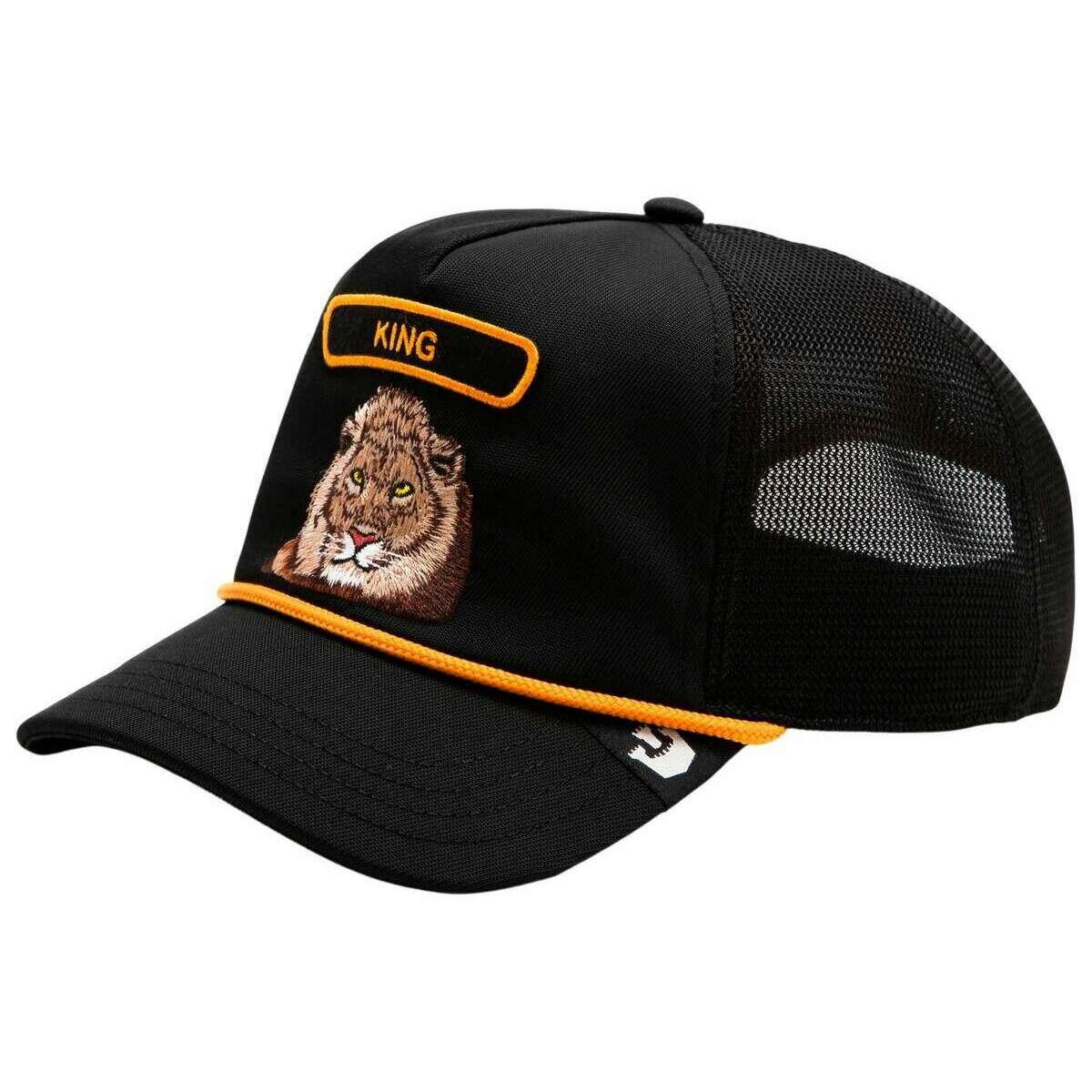 Introducing this unisex gb2 lion trucker hat by Goorin Bros, it is manufactured from 98% polyester and 2% spandex in a black colour. All the hats come complete with goorin bros tags. The Goorin Bros GB2 Lion Trucker Hat - Black crowns its wearer the undisputed king of the streets. With a directly embroidered lion and the bold KING lettering, this cap instantly becomes a powerful eye?catcher that radiates confidence and authority. The sleek black design offers a clean, modern look, elevated by the striking gold cord detail that adds a regal touch and guarantees all eyes will be on the wearer. Crafted with premium materials and designed for comfort, it features the classic Goorin fit that sits perfectly for everyday wear. A cap for true leaders bold, fearless, and ready to reign. With the GB2 Lion, you don t just wear a cap you wear the crown.