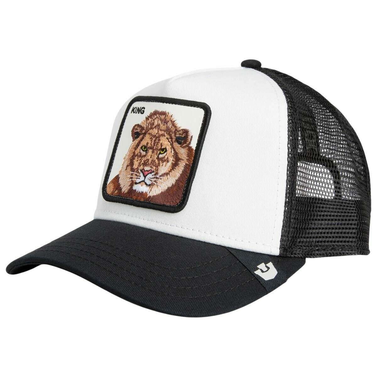 Using white 57% polyester and 43% cotton, this king trucker hat by Goorin Bros is perfect for men or women and a must have. All the hats come complete with goorin bros tags. The Goorin Bros King Trucker Hat - Dust White/Void Black is designed for those who lead rather than follow. More than just an accessory, it makes a statement of presence and mindset. The majestic lion patch symbolizes strength, unwavering confidence, and the attitude of someone who rules their path in life. The high?contrast look, featuring a crisp white front panel and a deep black visor, showcases the KING lion head patch with absolute clarity. Breathable black mesh at the back keeps the wearer cool even when the pressure rises, while the adjustable snapback closure ensures a perfect, comfortable fit every time. A true must?have for anyone who knows that real power comes from attitude, this cap embodies leadership, boldness, and iconic Goorin Bros style.