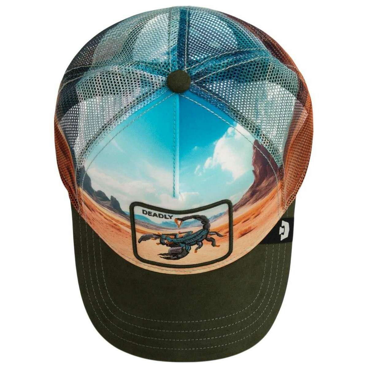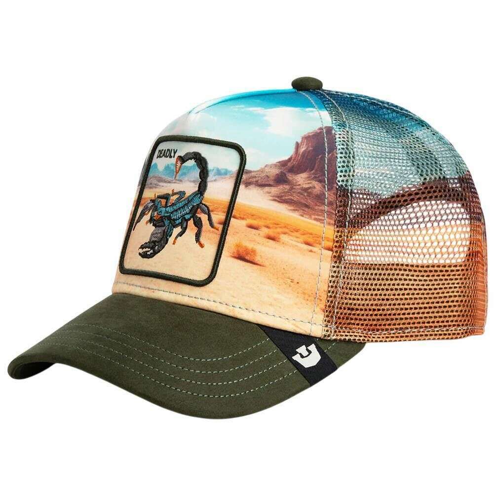 This well made unisex scorpion in the element trucker hat from Goorin Bros comes in a palm green colour and is manufactured from 98% polyester and 2% elastane. All the hats come complete with goorin bros tags. The Goorin Bros Scorpion in the Element Trucker Hat - Palm Green brings raw wilderness energy straight into any outfit. This striking Goorin Bros design stands out instantly thanks to its impressive desert?themed print, which creates a powerful, atmospheric backdrop. At the centre, the sharply embroidered scorpion patch adds a dangerously cool edge, giving the cap its unmistakable statement character. The breathable mesh back delivers all?day comfort, while the adjustable snapback ensures a perfect, personalised fit. With its vibrant colours, photorealistic design, and premium craftsmanship, this cap is ideal for anyone who wants to stand out bold, striking, and absolutely unique.