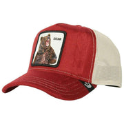 This unisex what it is snug lyfe trucker hat by the brand Goorin Bros is made from 57% polyester and 43% cotton and is showcased in red. All the hats come complete with goorin bros tags. The Goorin Bros What It Is Snug Lyfe Trucker Hat - Red from the SNUG?LYFE collection is the perfect companion for an effortlessly cool everyday look. The expressive bear patch adds a laid?back, playful touch, instantly giving any outfit a boost of personality. The standout feature is the cable?knit pattern on the front panel, bringing texture, warmth, and eye?catching detail to the design. The bold red crown paired with white mesh not only creates a striking contrast but also ensures breathability and all?day comfort. Thanks to the adjustable snapback closure, the cap fits comfortably and securely on any adventure. Whether you're out and about, relaxing, or elevating your casual streetwear, this cap ensures you re always stylish on the go.