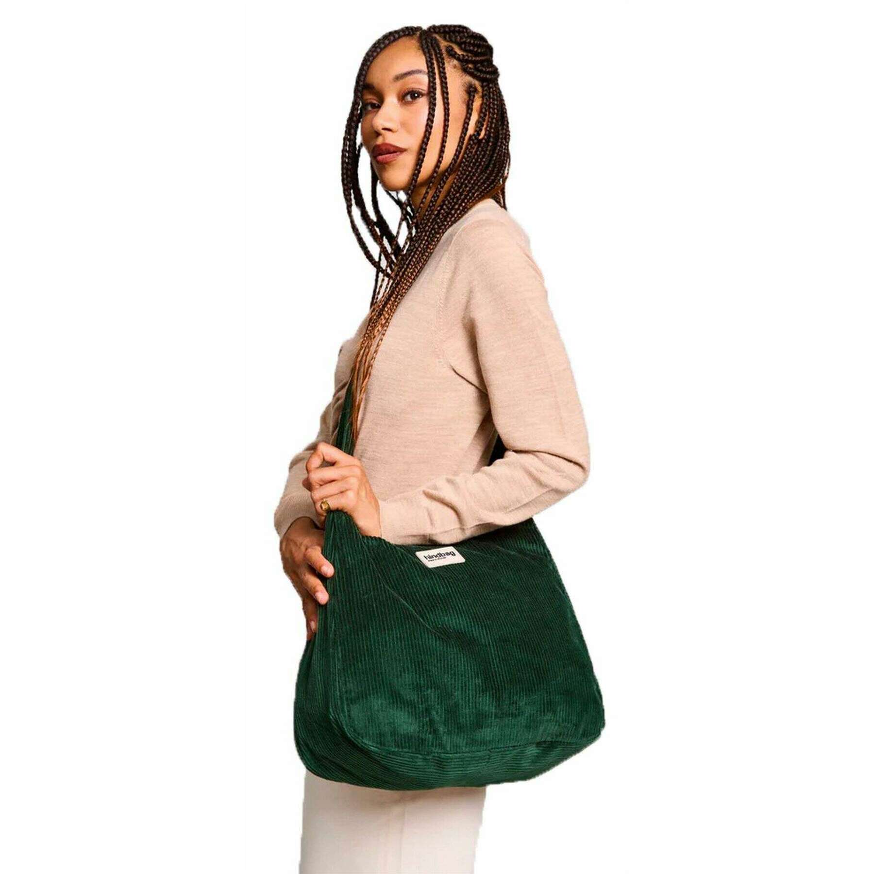 This well made unisex claire hobo bag from Hindbag comes in a velvet pine green colour and is manufactured from 100% organic corduroy. It measures 29cm(height) x 36cm(width) x 13cm(depth). All the bags come complete with hindbag packaging. The Hindbag Claire Hobo Bag - Velvet Pine Green is the perfect large shoulder bag to accompany your busy days. Featuring a double zip closure that makes it easy to open and close, this bag holds essentials like a wallet, phone, keys, maybe a small tablet, makeup pouch, or sunglasses with ease. The inner zip pocket keeps your essentials protected and within reach. The adjustable strap adapts to your needs and can be worn over the shoulder or crossbody for optimal comfort. Perfect for everyday wear this bag is comfort and style rolled into one.