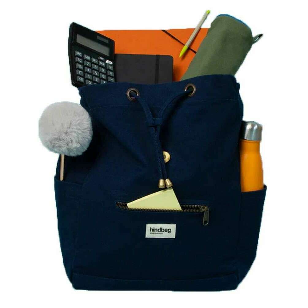 This well made unisex eliot backpack from Hindbag comes in a navy blue colour and is manufactured from 100% organic cotton. It measures 38cm(height) x 30cm(width) x 15cm(depth). All the bags come complete with hindbag tags. The Hindbag Eliot Backpack - Navy Blue makes for an essential everyday companion. The solid and comfortable design offers adjustable shoulder straps and a dual main section so you can easily organise your essentials. It also has a zipped exterior pocket at the front which is ideal for keeping your more valuable items as it secures them safely while also allowing easy and quick access. Crafted from thick, resistant organic cotton which is labelled GOTS meaning the production and transformation processes respect the environment and respect and improve working conditions. The draw string at the top ensures nothing will fall out making it a great day to day bag.