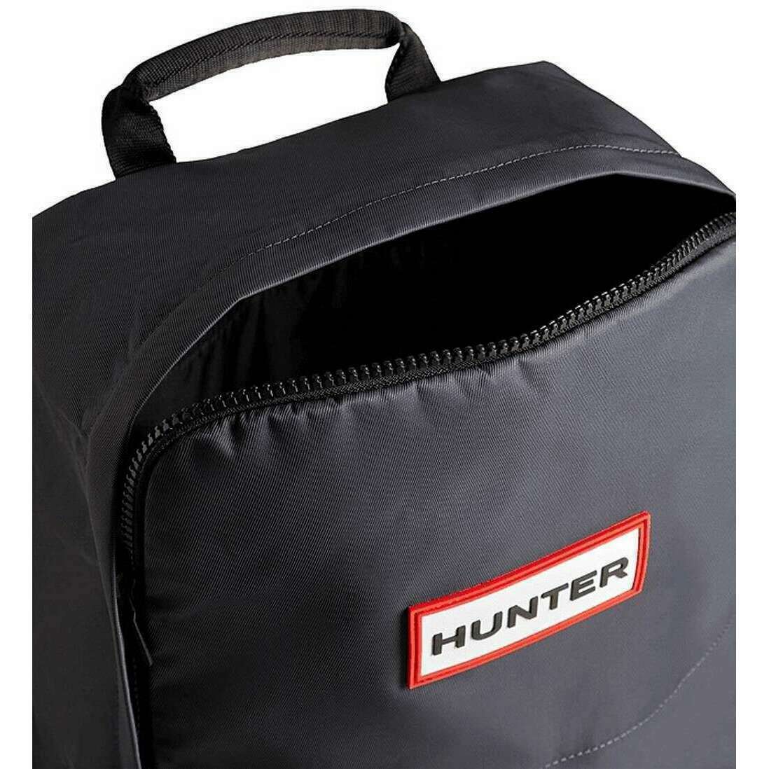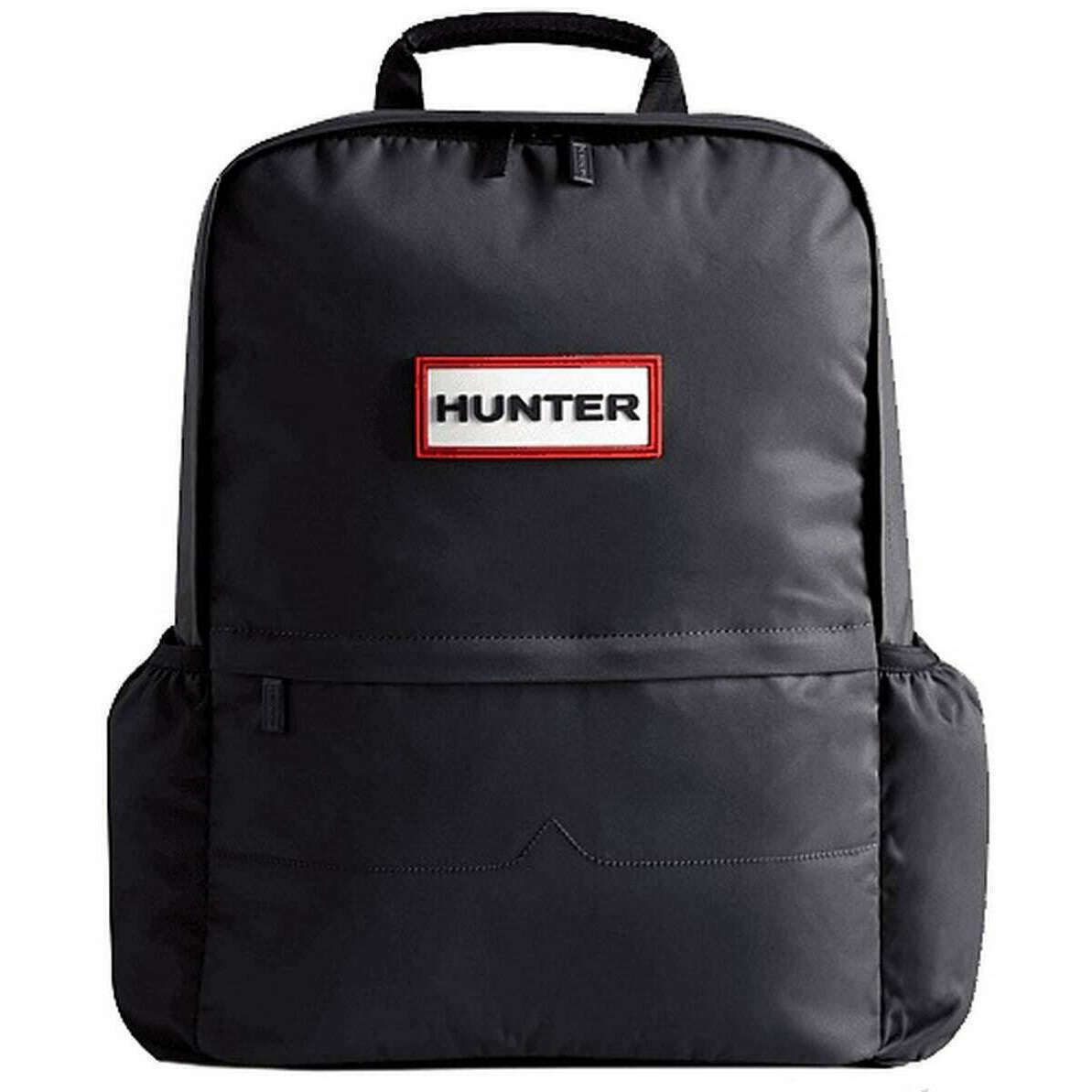 Manufactured from 100% nylon is this navy unisex nylon large backpack by the designer Hunter. It measures 42cm(height) x 29.5cm(width) x 16cm(depth). All the bags come complete with hunter packaging. The Hunter Nylon Large Backpack - Navy features a double zipper closure to ensure an easy access when needed and protection of your belongings falling out. This bag has been crafted with fully water-resistant materials to ensure a dry wear in any weathers or accidents. The 24.5L capacity allows lots of space for all your essentials with the convenient elasticated side pockets perfect for bottles, internal padded sleeve pocket for a 13.5"" laptop, and the front zipper pocket for smaller items. The padded adjustable straps and back give optimal comfort whilst on your adventures. Completing this sleek and classic look is the Hunter branding on the front.