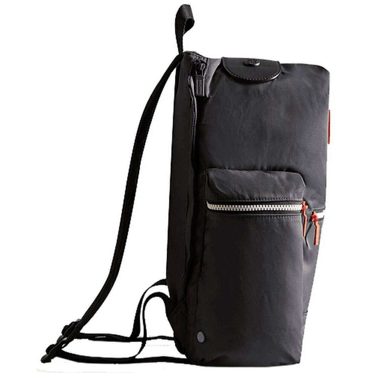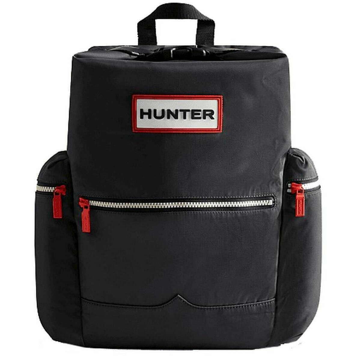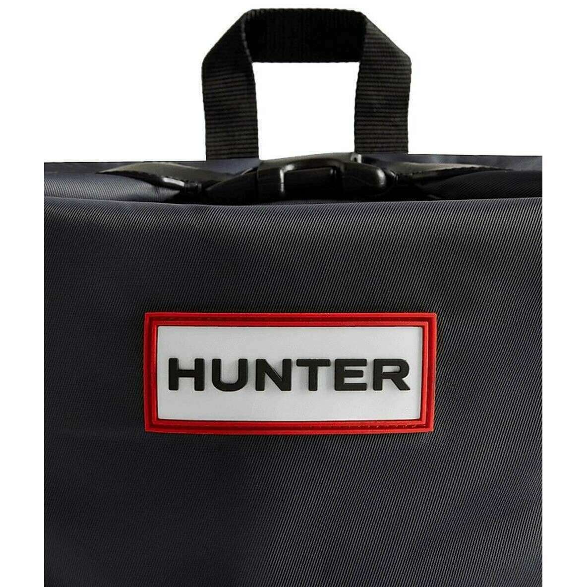 Brought to you by the brand Hunter, this navy unisex nylon large topclip backpack is made from 100% nylon . It measures 37cm(height) x 27cm(width) x 11.5cm(depth). All the bags come complete with hunter packaging. The Hunter Nylon Large Topclip Backpack - Navy features a zipper and buckle closure to ensure a secure wear. This bag has been crafted with fully water-resistant materials to ensure a dry wear in any weathers or accidents. The 16L capacity allows space for all your essentials with the convenient zipper side pockets, internal padded sleeve pocket for a 13.5"" laptop, and the front zipper pocket. The padded adjustable straps and protective back give optimal comfort whilst on your adventures. Completing this sleek and classic look is the Hunter branding on the front and the red zips.
