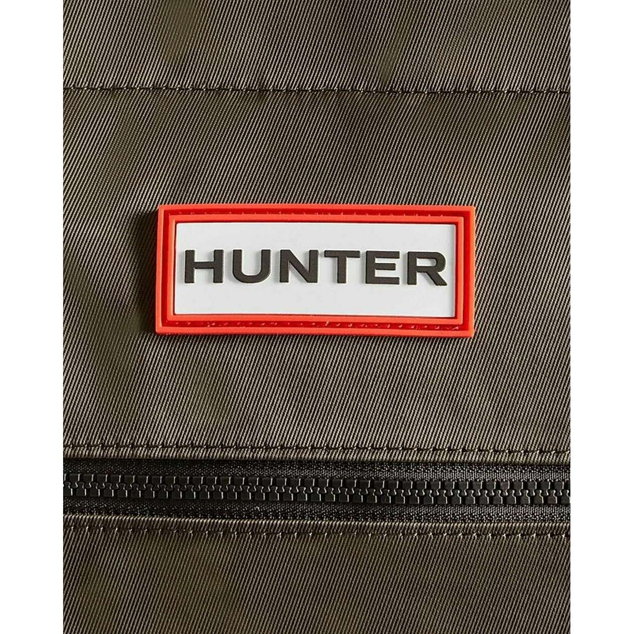 Using green 100% nylon, this nylon midi topclip tote bag by Hunter is perfect for men or women and a must have. It measures 30cm(height) x 46cm(width) x 14cm(depth). All the bags come complete with hunter packaging. The Hunter Nylon Midi Topclip Tote Bag - Dark Olive Green features carry handles and an adjustable crossbody strap for versatility. This bag has been crafted with fully vegan water-resistant materials to ensure a dry wear in any weathers or accidents. The large capacity allows space for all your essentials with the convenient front zipper and internal pockets. The padded top adjustable strap ensures optimal comfort whilst on your adventures. Completing this sleek and classic look is the Hunter silicon label on the front.