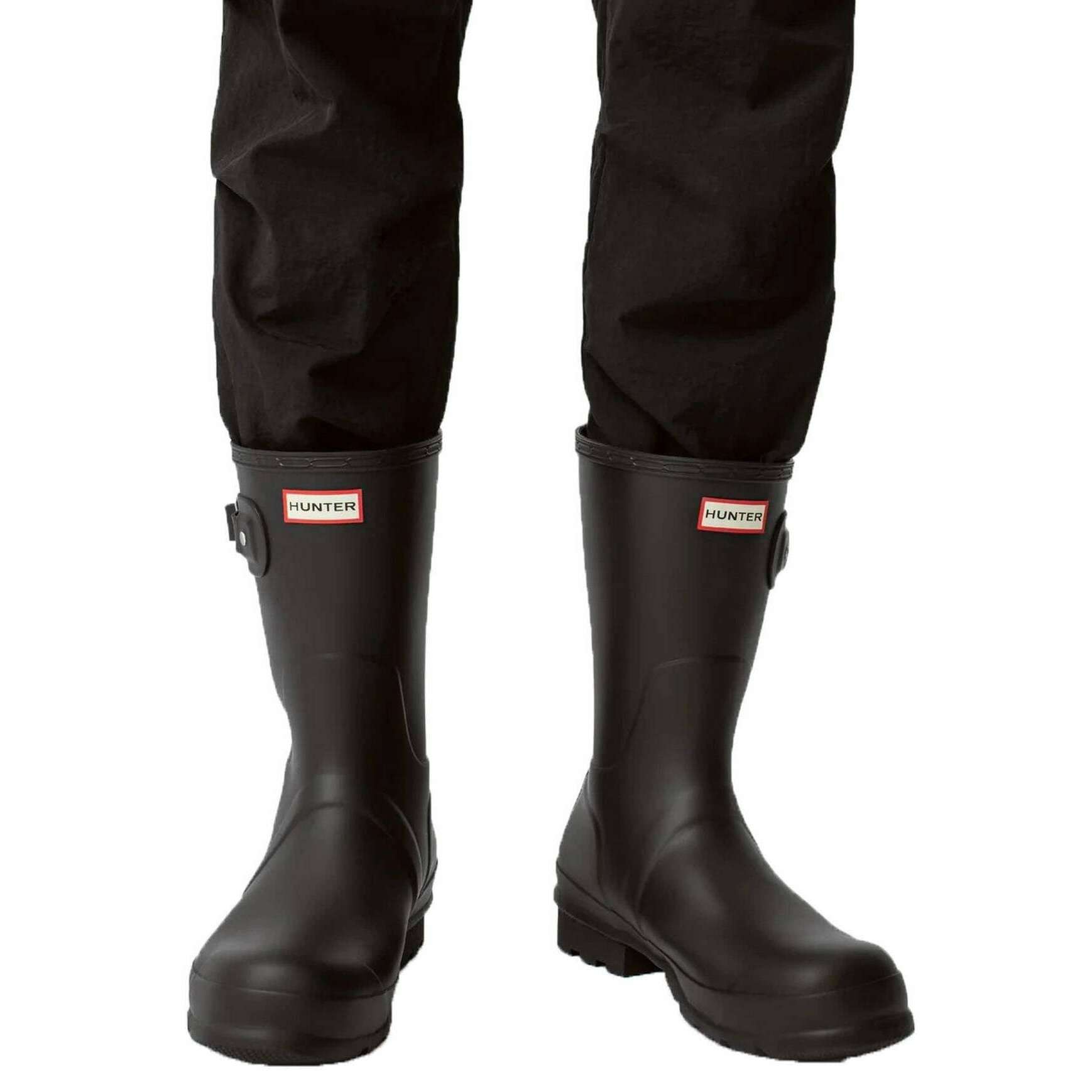 Manufactured from 100% rubber is this black men's original short wellington boots by the designer Hunter. All the wellington boots come complete with hunter packaging. The Hunter Original Short Wellington Boots - Black offers a versatile mid?calf design inspired by Hunter s iconic Tall Boot. It is handcrafted from 28 natural rubber parts and takes over three days to assemble before being vulcanised for durability and waterproof protection. The boot features a matte finish, a comfortable polyester lining, and the Hunter Original tread pattern for reliable grip. Certified vegan and fully waterproof, it provides everyday comfort and classic style.