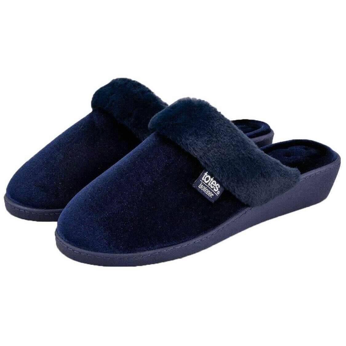 These women's sparkle velour heeled mule slippers by the brand Isotoner are made from 92% polyester and 8% elastane and are showcased in navy. Also the navy slippers are designed in a plain pattern, It is recommended to machine wash at 30 degrees to keep these slippers in good condition. All the slippers come complete with isotoner packaging. The Isotoner Sparkle Velour Heeled Mule Slippers - Navy offer exceptional comfort, support and warmth! Featuring 360 surround comfort memory foam and pillow step cushioned technology with a foam layer will feel like you re walking on a cloud with a durable heeled sole for support. This mule style will keep your feet nice and toasty with the soft fluffy materials and coverage of the foot, whilst also being breathable with an open back.