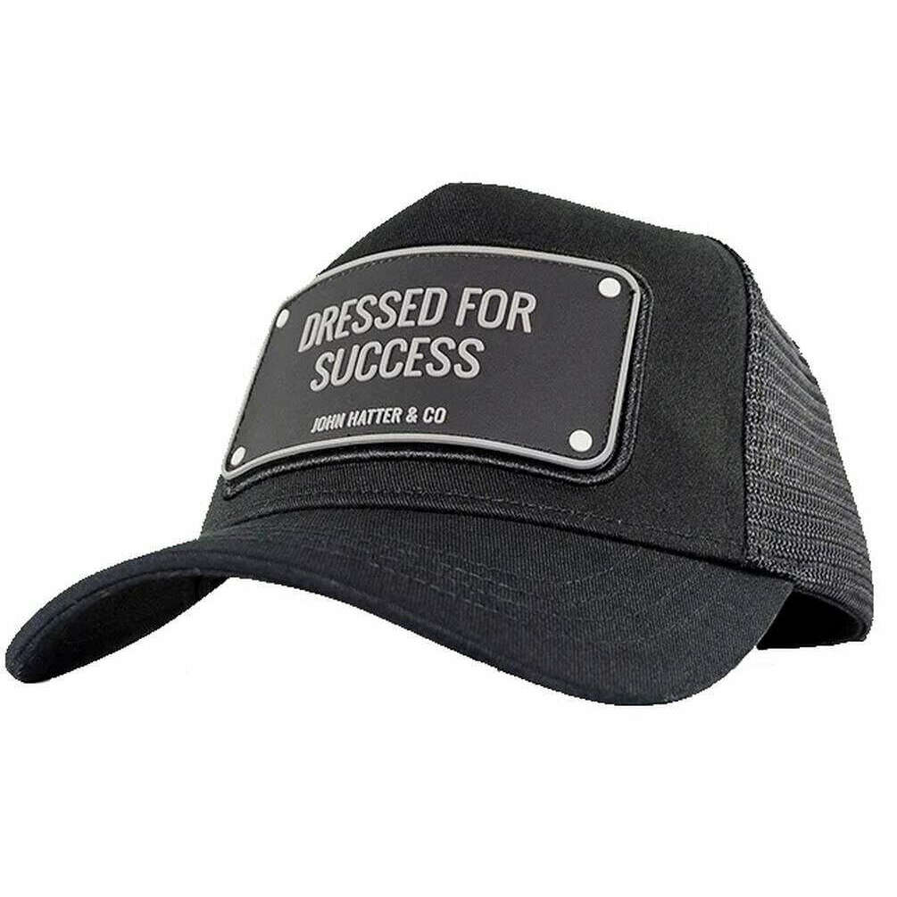 This well made unisex dressed for success rubber trucker hat from John Hatter comes in a black/grey colour and is manufactured from 57% cotton and 43% polyester. All the hats come complete with john hatter tags. The John Hatter Dressed For Success Rubber Trucker Hat - Black/Grey is a trendy trucker hat perfect for rain or shine. This black and grey hat features a plastic mesh backing to minimise sweating and can be adjusted with the closure on the back to fit any size. A rubber plate on the front features the phrase DRESSED FOR SUCCESS . Made up of durable materials, this hat is made to last.