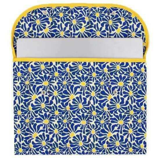 This 13" laptop sleeve for women is fashioned by the brand Kind Bag London in a blue colour and is made from 100% recycled plastic. It measures 25cm(height) x 33cm(width) x 2cm(depth). It is recommended to hand wash only to keep this laptop case in good condition. All the laptop cases come complete with kind bag packaging. The Kind Bag London 13" Laptop Sleeve - Abstract Flowers Blue/Yellow features a unique and fun design, great for adding a stylish touch to your look whilst keeping your laptop and belongings safe from damage. This sleeve has a 1cm thick quilted padding and a metal button closure to optimise the security. Not only is this case hand-washable but it is also completely water-resistant. Completely recycled and ethically and sustainably made creates the perfect companion when commuting and travelling.