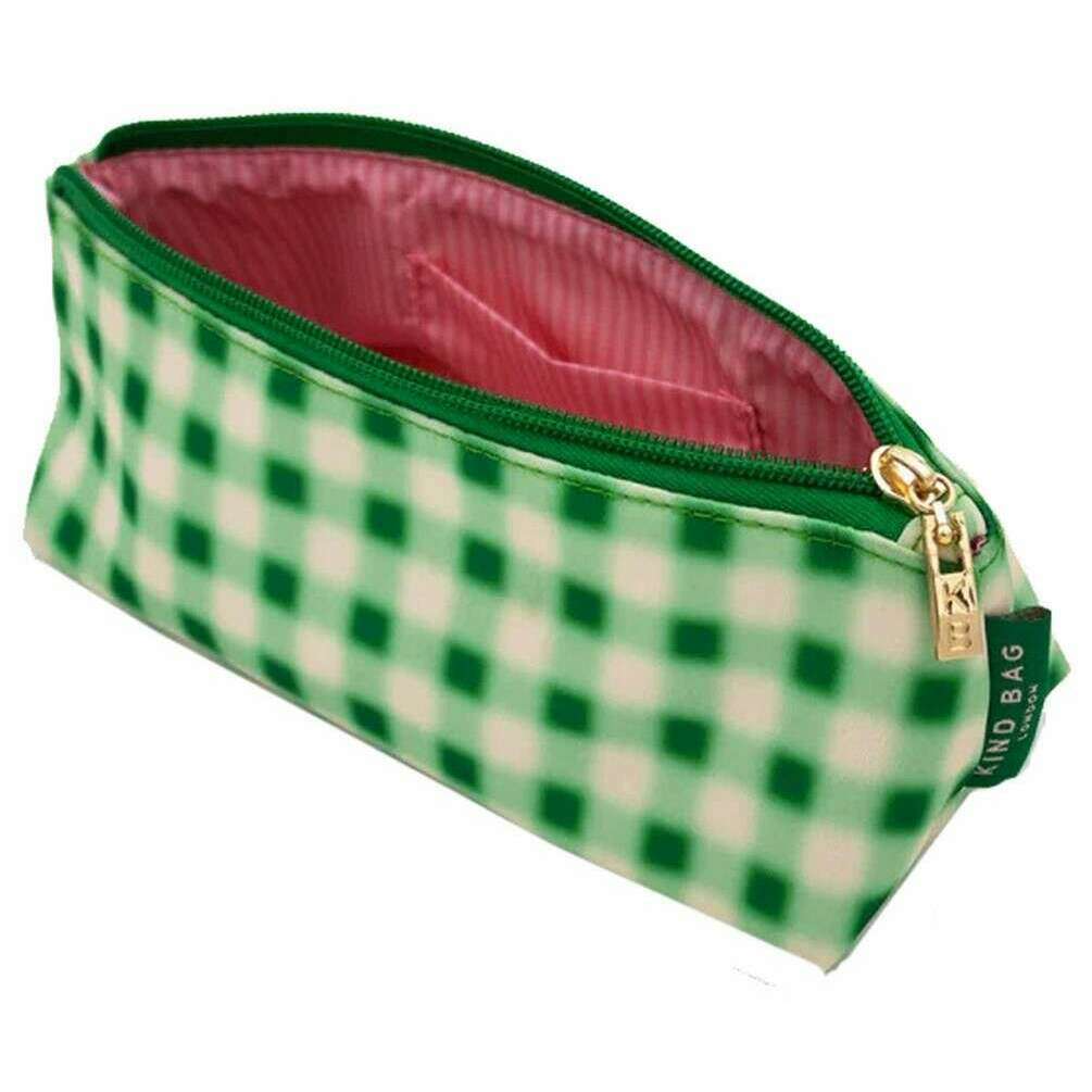This women's essentials case by the brand Kind Bag London is made from 100% recycled plastic and is showcased in green. It measures 24cm(height) x 6.5cm(width) x 6.5cm(depth). All the accessory cases come complete with kind bag packaging. The Kind Bag London Essentials Case - Blurred Plaid Green/Pink is the perfect addition to your school/work bag. This stationary case is perfect for storing all your stationary belongings and comes with a handy inside pocket for extra storage.