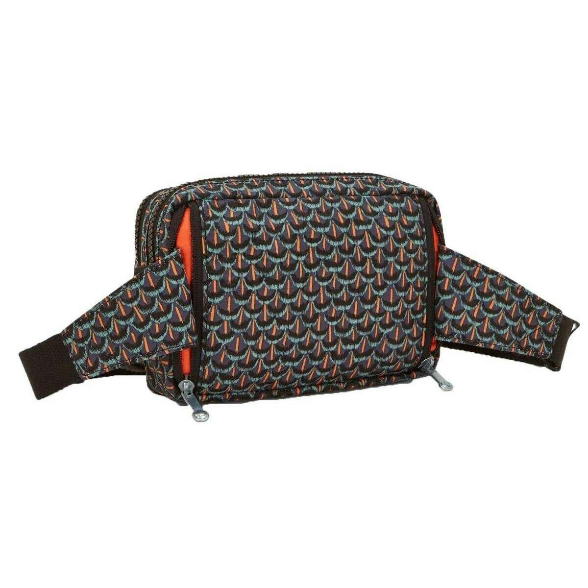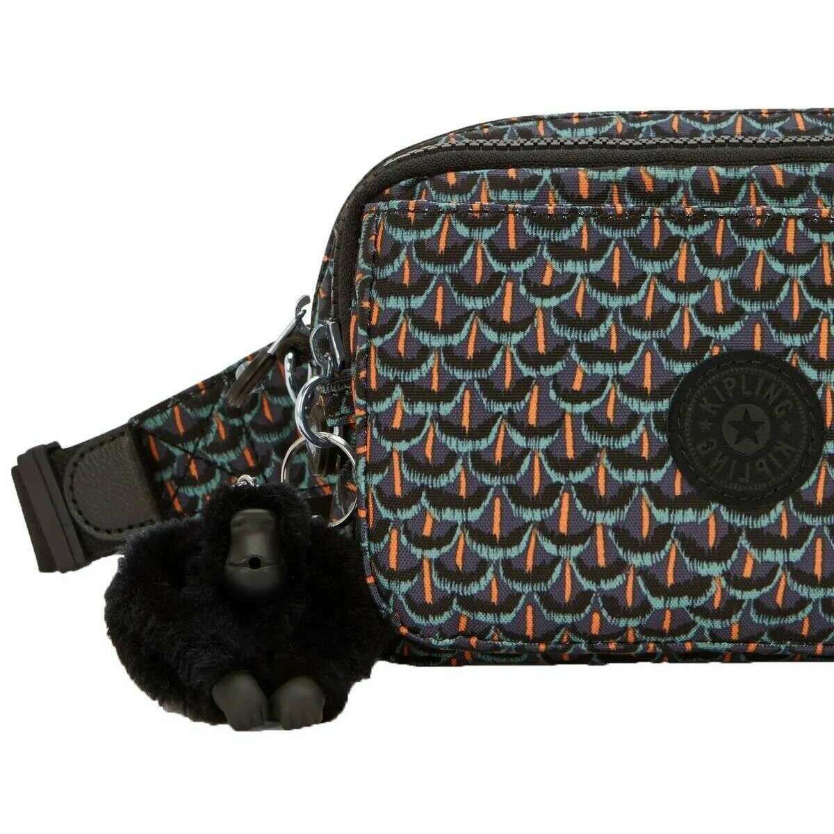 Designer Kipling has brought you this women's 56% recycled polyamide and 44% polyamide bag using geo feathers black tones. It measures 13cm(height) x 19cm(width) x 8cm(depth). All the bags come complete with kipling packaging. The Kipling Abanu Multi Crossbody Bag - Geo Feathers Black converts from a crossbody to a waist pack in a matter of seconds! Simply remove the crossbody strap and unzip the waist pack straps from the back and clip it around your waist. With multiple secure zip compartments, this bag keeps your essentials organized. The durable, water-repellent fabric ensures it stays looking fresh no matter the weather, while its sleek silhouette adds a touch of modern style to any outfit.