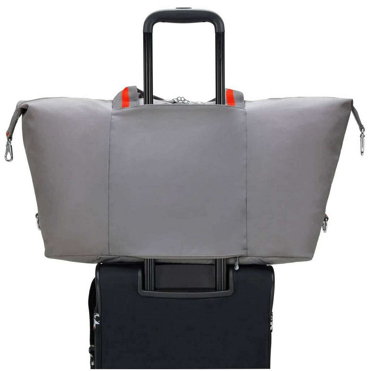 This bori duffle bag for women is fashioned by the brand Kipling in a grey colour and is made from 60% polyamide and 40% recycled polyamide. It measures 34.5cm(height) x 71cm(width) x 29cm(depth). All the bags come complete with kipling packaging. The Kipling Bori Duffle Bag - Inviting Grey is meticulously crafted from durable recycled polyester and guarantees long-lasting quality. With a volume of 49 litres this duffle bag features trolley sleeve, front zip pocket and internal zip pocket. The adjustable and detachable shoulder strap provides versatility and comfort, allowing you to carry it however you prefer. Whether you're going on a weekend getaway or a longer trip, this spacious duffel bag provides ample space to accommodate all your essentials.