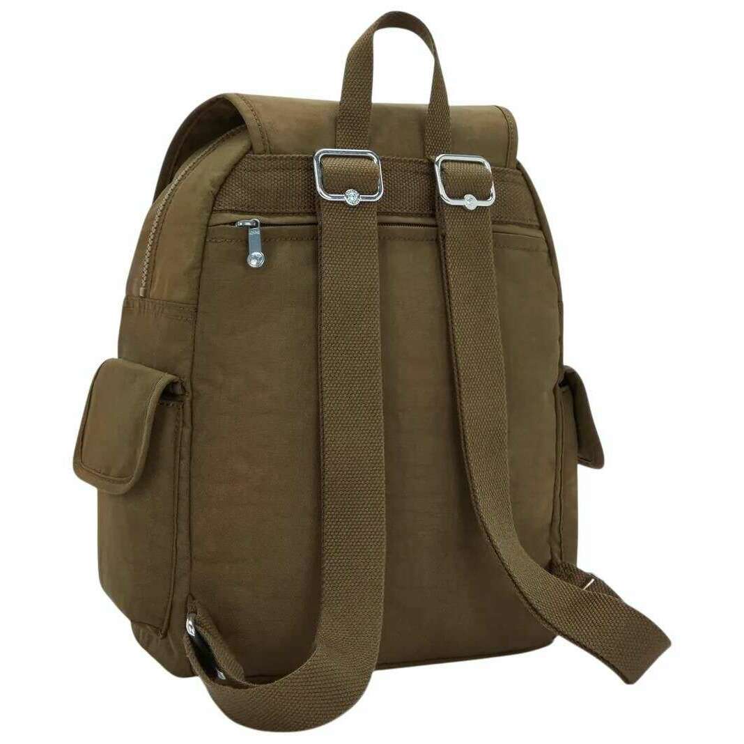 This women's city pack small backpack has been made from 56% recycled polyamide and 44% polyamide, featured in a khaki colour and is from the brand Kipling. It measures 33.5cm(height) x 27cm(width) x 19cm(depth). All the bags come complete with kipling packaging. The Kipling City Pack Small Backpack - Smooth Khaki is a chic, practical choice for women who love life on the go. Compact yet thoughtfully designed, it offers a stylish water?repellent finish and a lightweight feel that makes it perfect for busy days, city strolls, or the daily commute. With adjustable backpack straps and a convenient top handle, it s easy to carry in whichever way suits the moment. Simply pack your essentials and step out ready for anything. The exterior is equipped with a zipped front pocket, a zipped back pocket, and two side pockets with magnetic stud fastenings, providing quick?access storage for items needed throughout the day. A front flap with a magnetic stud fastening opens to reveal a drawstring closure, securing the zipped main compartment. Inside, the backpack features a zipped pocket, a mobile phone pocket, a pouch pocket for a wallet, and a pen loop to keep everything organised. Finished with the round Kipling logo and the signature robot monkey charm, the City Pack S is lightweight, durable, and always practical an ideal companion for everyday adventures.