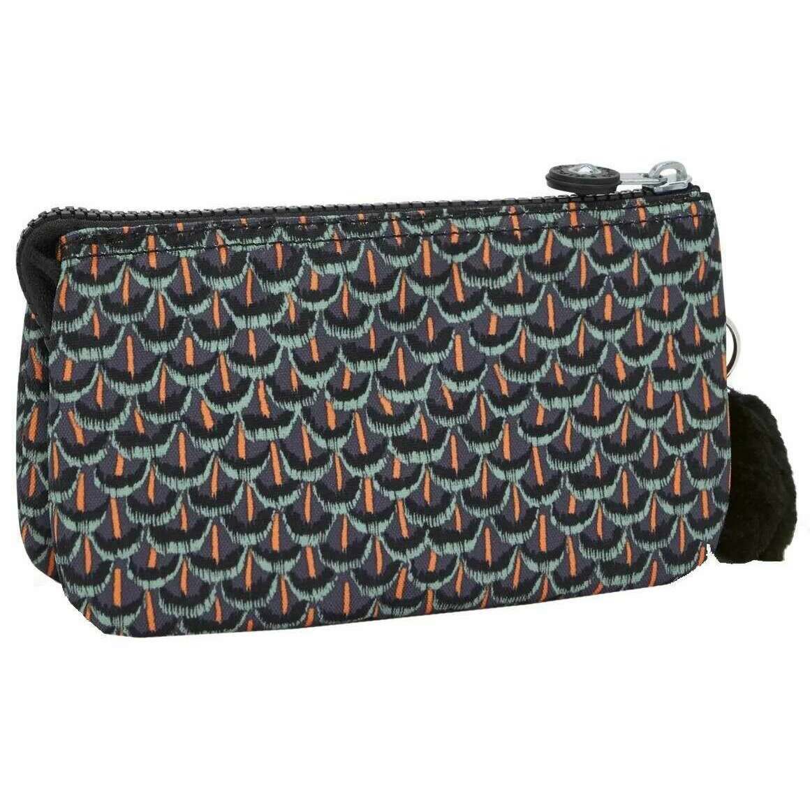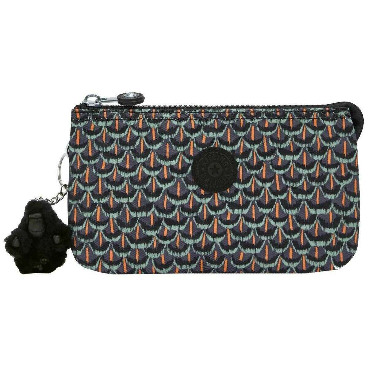 This women's creativity large pouch by the brand Kipling is made from 56% recycled polyamide and 44% polyamide and is showcased in black. It measures 11cm(height) x 18.5cm(width) x 4cm(depth). All the bags come complete with kipling packaging. The Kipling Creativity Large Pouch - Geo Feather Black is a compact but highly practical accessory pouch designed to help keep your smaller items organized. Featuring a zip closure along the top to secure contents, this pouch internal compartments and zip pocket is useful for separating small items. With the monkey charm and thoughtful layout and lightweight design, this pouch is a go-to for anyone who values structure and convenience without bulk.