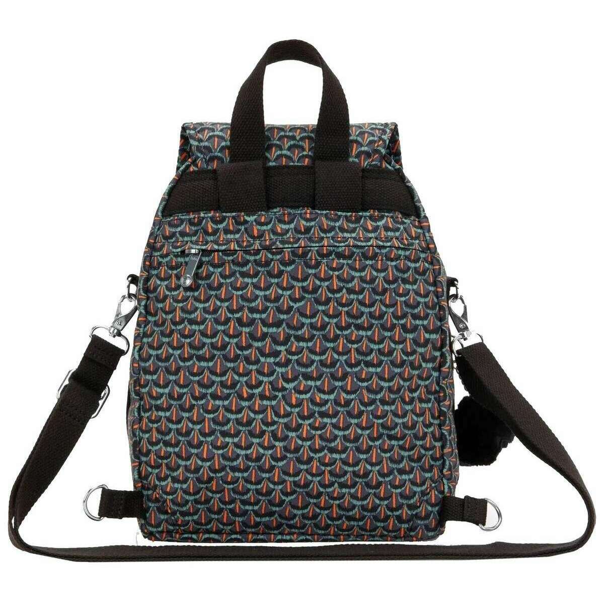 Designer Kipling has brought you this women's 100% recycled polyester bag using geo feather black tones. It measures 31cm(height) x 22cm(width) x 14cm(depth). All the bags come complete with kipling packaging. The Kipling Firefly Up Backpack - Geo Feather Black is designed to help you stay organized. With a main compartment with zipped pockets, this bag also features two zipped front pockets and two rear zipped pockets for complete storage and more security. Built with a top carry handle and adjustable backpack straps you have varying carrying options. Travel or commute, this bag is the perfect choice!