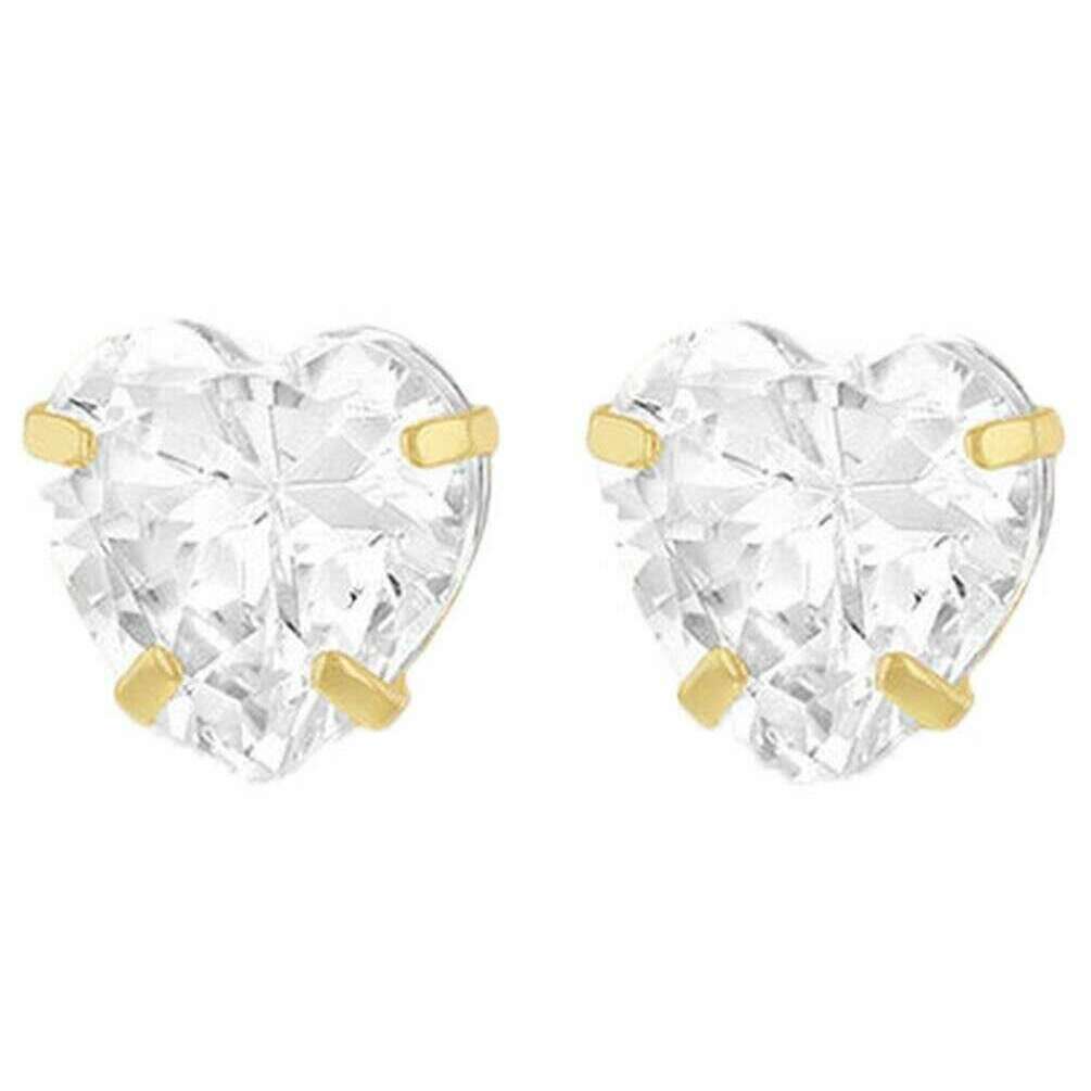 These women's heart earrings have been made from 9ct yellow gold, featured in a clear colour and are from the brand KJ Beckett. All the earrings come complete with packaging. The KJ Beckett Heart Earrings - Yellow Gold/Clear add a touch of romance and sparkle to any look! Featuring a dazzling 6mm heart-shaped white cubic zirconia, each stone is expertly cut to maximize brilliance and catch the light from every angle. Set in genuine 9ct yellow gold, these earrings offer a timeless blend of elegance and charm. Comfortable and secure, these stud earrings are a lovely addition to any jewellery collection.