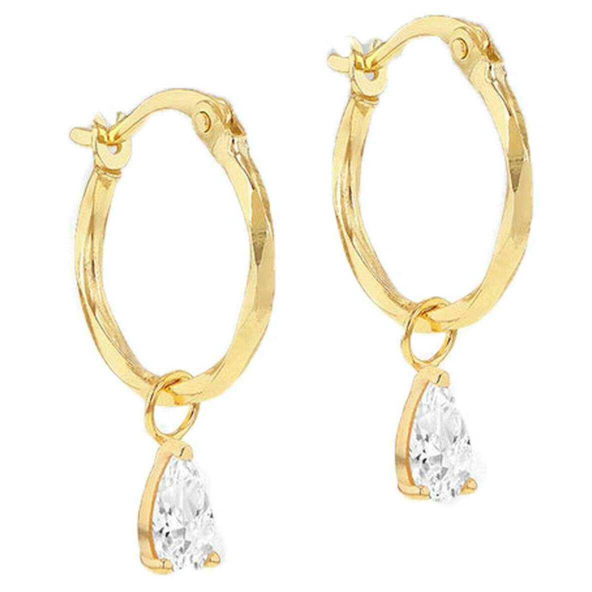 Brought to you by the brand KJ Beckett, these yellow gold women's pear diamond cut creole hoop earring are made from 9ct yellow gold. All the earrings come complete with packaging. The KJ Beckett Pear Diamond Cut Creole Hoop Earring - Yellow Gold is where refined sparkle meets elegant design. Crafted in radiant 9ct yellow gold, each hoop is adorned with a shimmering pear-shaped cubic zirconia, enhanced by a diamond cut finish that beautifully reflects the light. Perfectly balanced for everyday wear or special occasions, these earrings offer a comfortable fit with a touch of luxury.