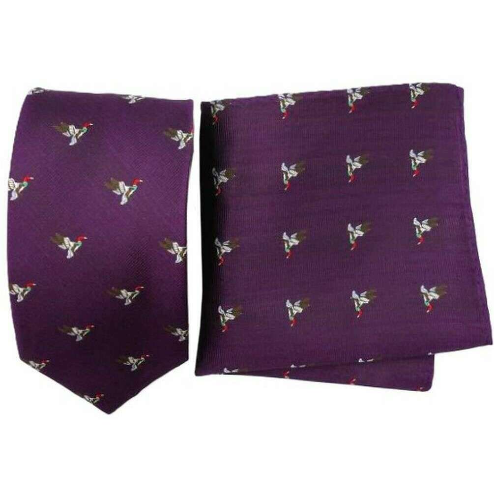 Manufactured from 100% silk is this purple men's duck silk tie and pocket square set by the designer Knightsbridge Neckwear. Also the purple tie and pocket square set is designed in a unique pattern, It is recommended to dry clean only to keep this tie and pocket square set in good condition. All the tie and pocket square sets come complete with knightsbridge neckwear presentation box The Knightsbridge Neckwear Duck Silk Tie and Pocket Square Set - Purple a unique purple duck design that will be certain to impress any stylish gentleman. This tie and pocket square is ideal to wear for any occasion, adding a dash of colour to your attire at the same time.