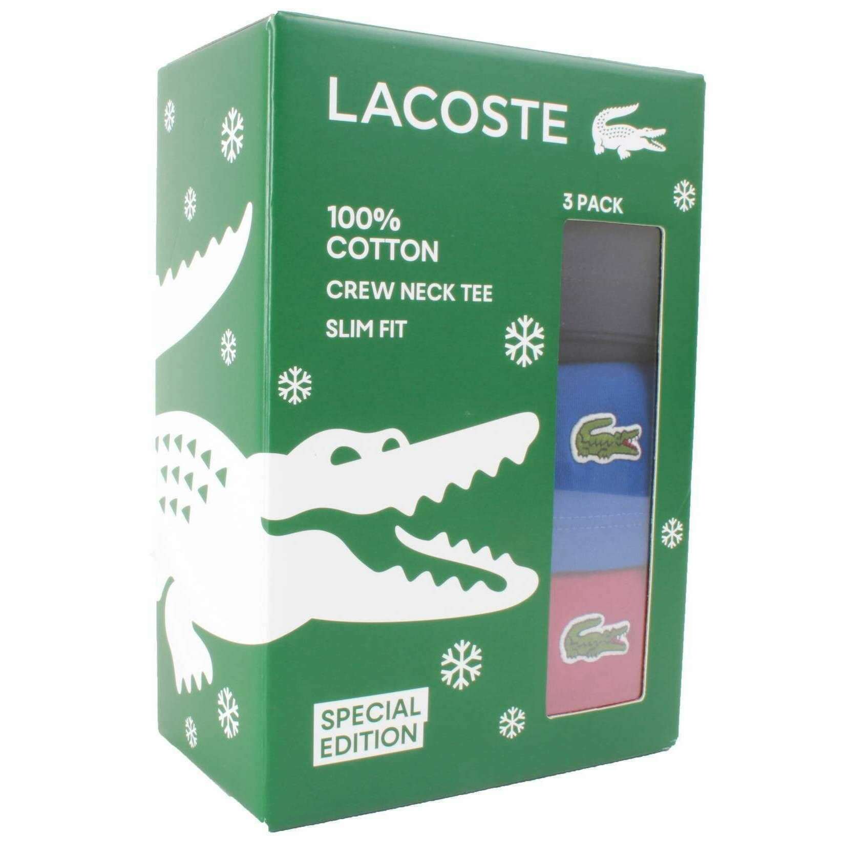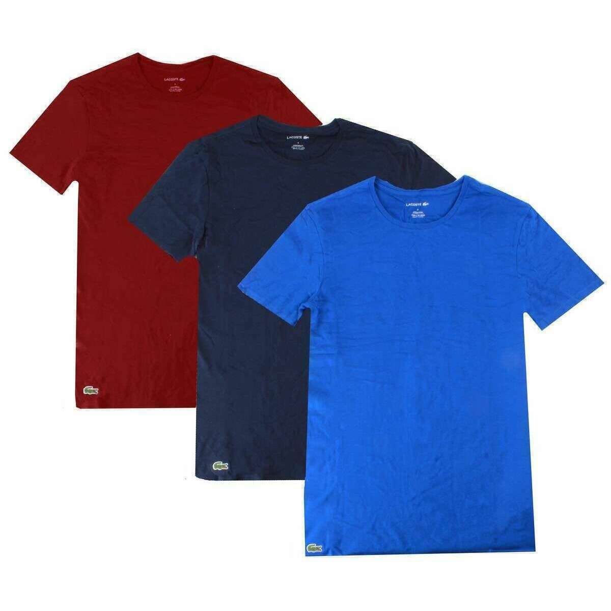 Lacoste Crew Neck Slim Fit Cotton 3 Pack T-Shirts - Bordeaux Burgundy/Cobalt Blue/Navy