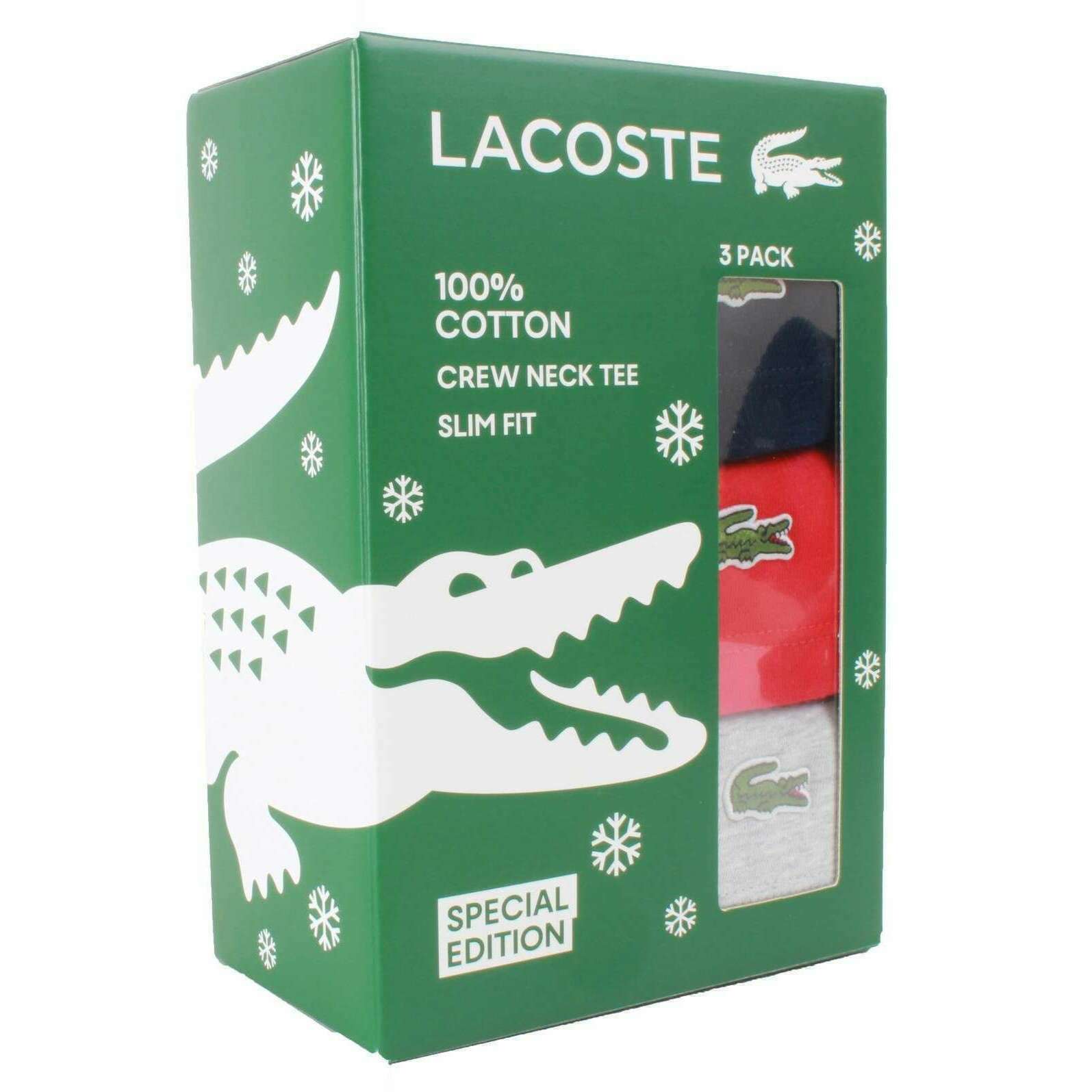 Lacoste Crew Neck Slim Fit Cotton 3 Pack T-Shirts - Navy/Red/Silver Chine Grey