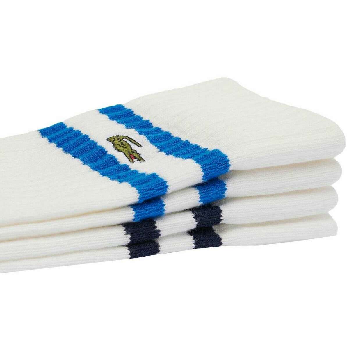 Lacoste Ribbed Cotton 2 Pack Socks - White/Blue