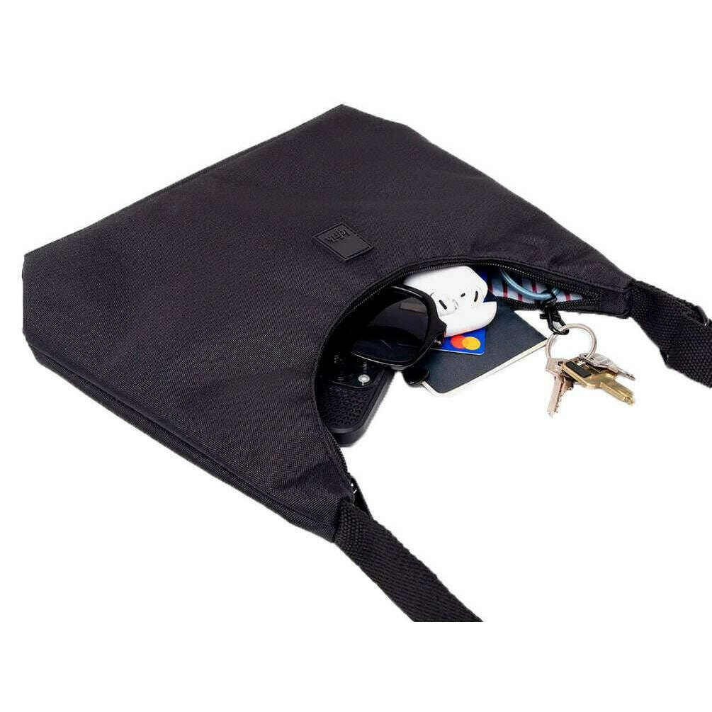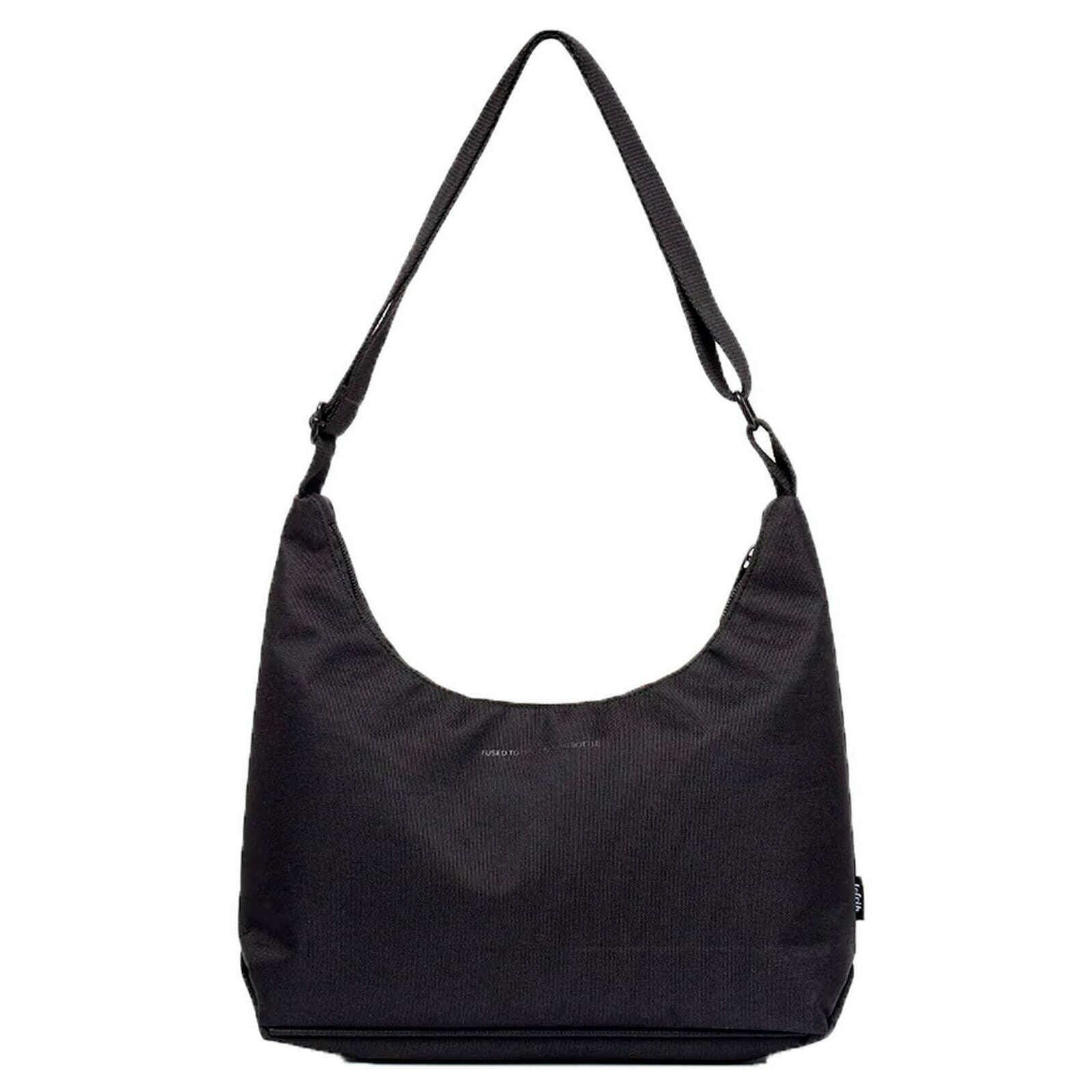 This bico shoulder bag for men or women is fashioned by the brand Lefrik in a black colour and is made from 100% vegan oxford rpet fabric. It measures 28cm(height) x 17cm(width) x 8cm(depth). All the bags come complete with lefrik packaging. The Lefrik Bico Shoulder Bag - Black is a modern, eco-conscious accessory that seamlessly blends style with sustainability. Designed with a subtle crescent shape, this bag offers ease of carrying. With ample space for your essentials, this shoulder bag features an adjustable strap, an easy zip closure and one zipped inner pocket to make sure you can keep your belongings organized. Whether you're navigating city streets or enjoying a weekend getaway, this bag is ideal for both everyday errands and casual outings.