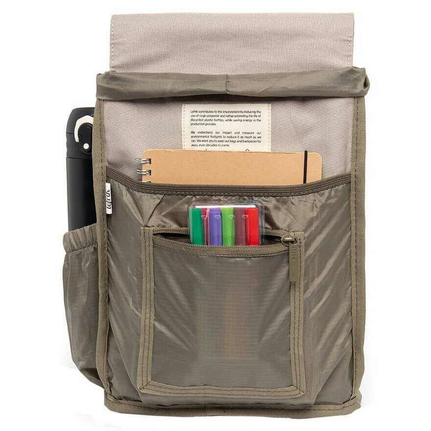 Brought to you by the brand Lefrik, this ash grey unisex kaut mini backpack is made from 100% vegan oxford rpet fabric. It measures 30cm(height) x 22cm(width) x 13cm(depth). All the bags come complete with lefrik packaging. The Lefrik Kaut Mini Backpack - Ash Grey is the mini version of the iconic Kaut model, featuring a large main compartment and a separate pocket for notebooks or small electronic devices. Perfect for school, work or play, this backpack is lightweight and water resistant. The quick access pocket on the flap and security pocket on the back allow you to store small items comfortably. With just the right amount of space, this vegan and sustainable backpack is designed for convenience.