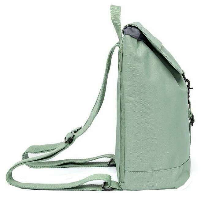 Perfect for men or women is this Lefrik sage green kaut mini backpack, it is also made from 100% vegan oxford rpet fabric. It measures 30cm(height) x 22cm(width) x 13cm(depth). All the bags come complete with lefrik packaging. The Lefrik Kaut Mini Backpack - Sage Green is the mini version of the iconic Kaut model, featuring a large main compartment and a separate pocket for notebooks or small electronic devices. Perfect for school, work or play, this backpack is lightweight and water resistant. The quick access pocket on the flap and security pocket on the back allow you to store small items comfortably. With just the right amount of space, this vegan and sustainable backpack is designed for convenience.