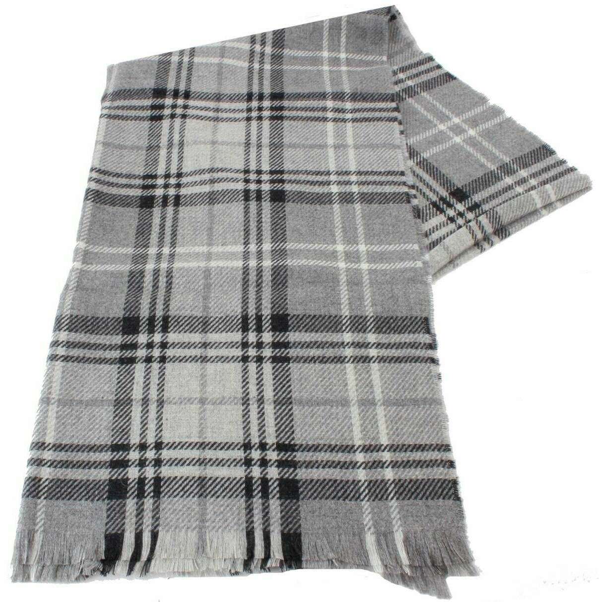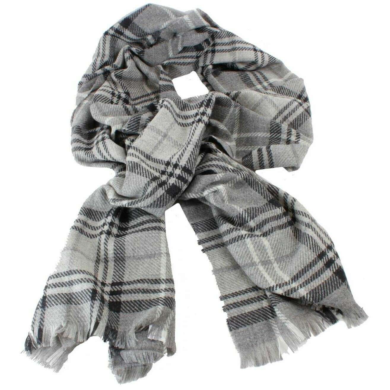 This unisex brock highland luxury scarf by the brand Locharron of Scotland is made from 95% wool and 5% cashmere and is showcased in grey. It measures 210cm(height) x 68cm(width). Also the granite grey scarf is designed in a tartan pattern, Locharron of Scotland have made this brock highland luxury scarf in Scotland. It is recommended to dry clean only to keep this scarf in good condition. All the scarves come complete in locharron of scotland packaging. The Locharron of Scotland Brock Highland Luxury Scarf - Granite Grey offers an oversized look with a short pin fringe, giving you that timeless elegance. The super soft structure ensures a warm and cosy wear making it an ideal choice for your winter wear. Style it in a rang of different ways to give your attire a flattering finish and share the love by gifting it to someone special.
