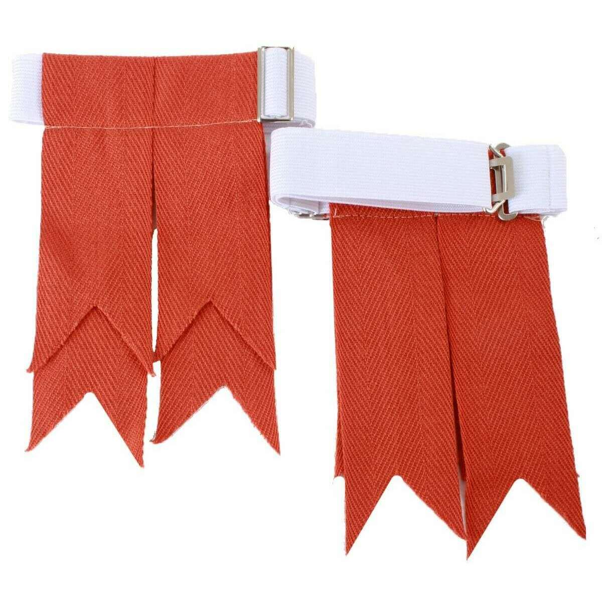 Perfect for men are these Locharron of Scotland ancient red plain flashes, they are also made from 100% pure new wool. It measures 17.4cm(height) x 7.5cm(width). Also the ancient red socks are designed in a plain pattern, Locharron of Scotland have made these plain flashes in Scotland. It is recommended to dry clean only to keep these socks in good condition. All the socks come complete in locharron of scotland packaging. The Locharron of Scotland Plain Flashes - Ancient Red will make the perfect accessory to your Kilt Hose (socks), finishing your outfit with traditional flair. They are fitted with an elasticated attachment which goes around the cuff of your socks, adding decoration for those special occasions whilst also being a comfortable wear. Designed with double ribbons they are a must have.