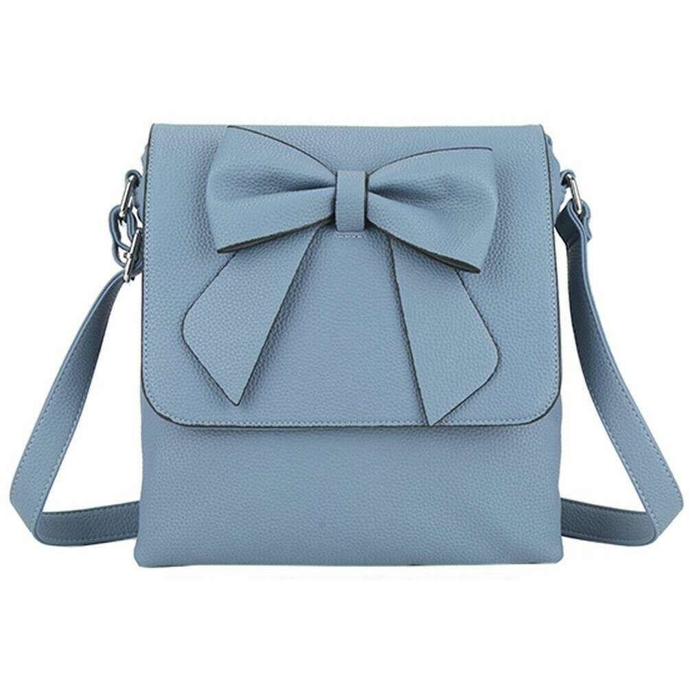 Manufactured from 100% polyurethane is this denim blue women's adjustable bow crossbody bag by the designer Long and Son. It measures 26cm(height) x 25cm(width) x 2cm(depth). All the bags come complete with long & son packaging. The Long and Son Adjustable Bow Crossbody Bag - Denim Blue cute and girly is a practical and gorgeous bag that will make a great addition to your collection. Featuring double compartments for optimal storage and added interior pockets and one exterior pocket for organisation. The double zipper and flap over magnetic closure ensures optimal security for your belongings. The strap can be adjusted for versatility matching any look. Complete with a big front bow gives a statement touch.
