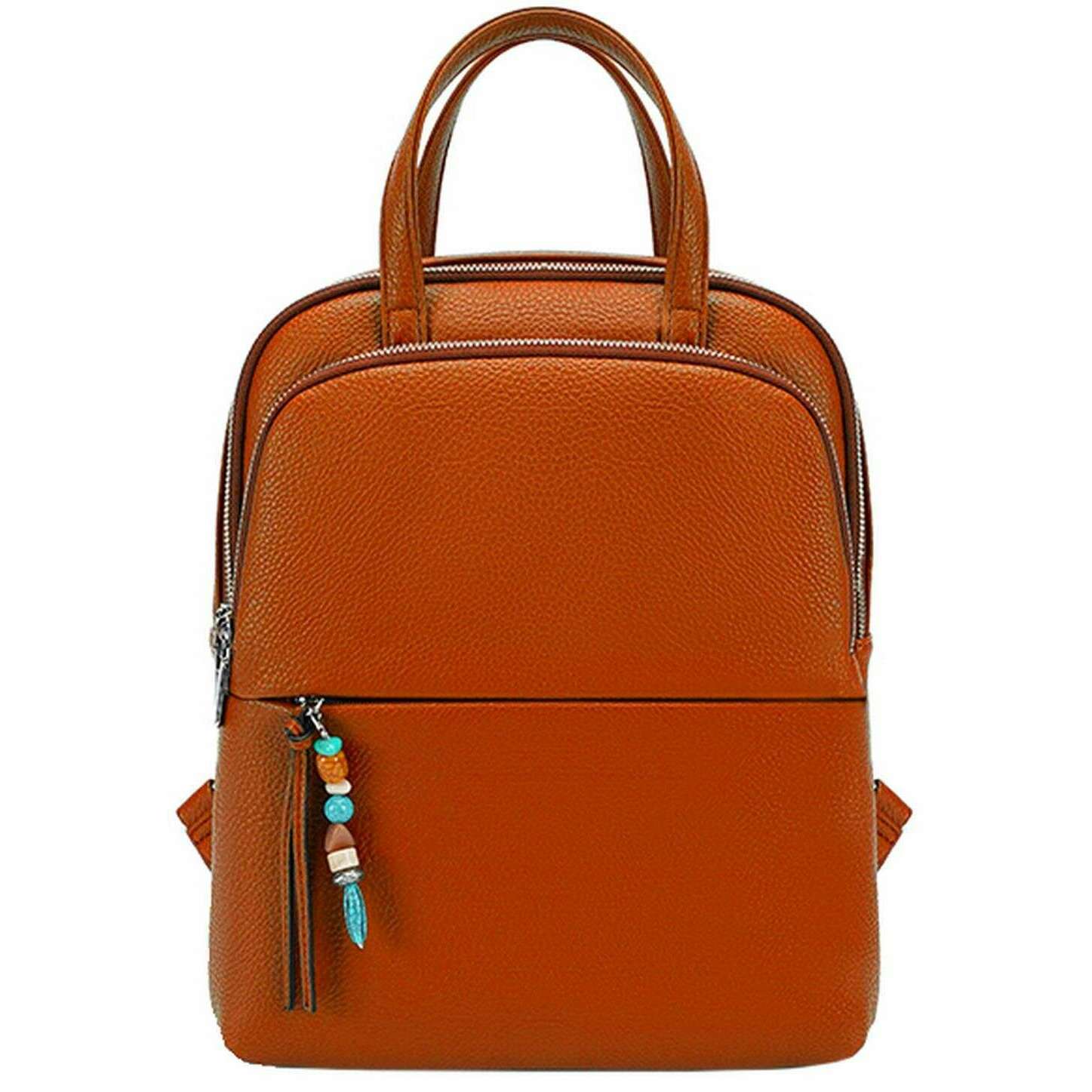 Introducing this women's backpack by Long and Son, it is manufactured from 100% polyurethane in a brown colour. It measures 34cm(height) x 29cm(width) x 10cm(depth). All the bags come complete with long & son packaging. The Long and Son Backpack - Brown is a classic with a chic and girly twist featuring a sleek design with an added charm on the zip. Having adjustable back straps allows for a personalised fit for hands free ease and two carry handles for convenience. The exterior pockets, interior pockets and large main compartment allow for optimal storage and organisation when out and about. Great for travels, taking to work or having as an everyday bag this will become a well-used accessory.