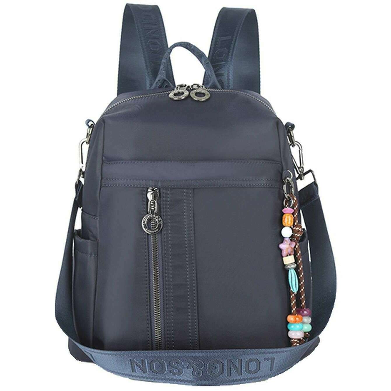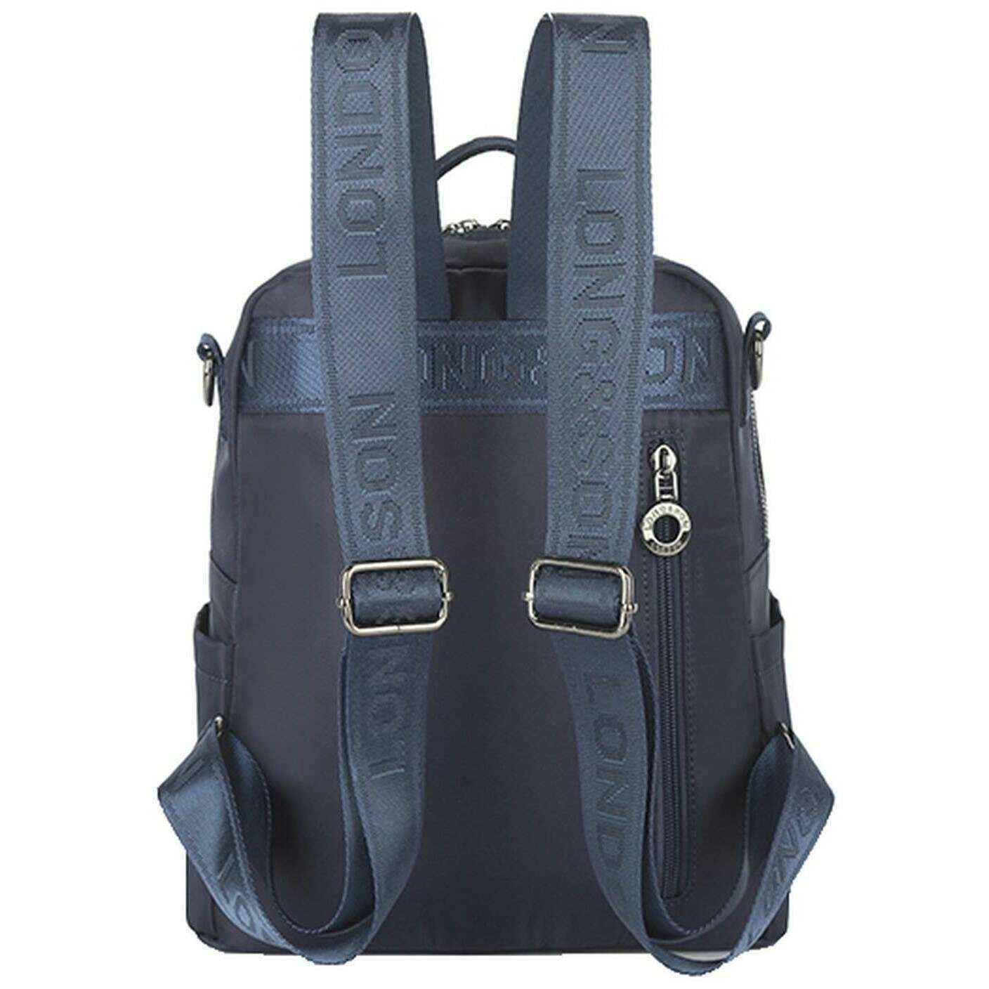 Manufactured from 100% polyurethane is this navy women's shoulder backpack by the designer Long and Son. It measures 30cm(height) x 29cm(width) x 12cm(depth). All the bags come complete with long & son packaging. The Long and Son Shoulder Backpack - Navy modern and stylish is a must if you are looking for a bag to travel everywhere with you. Perfectly sized to carry all your essentials and more whilst not being overly sized and bulky. Featuring two front zipper pockets, two side open pockets, a back zipper pocket, and multiple interior pockets ensures great storage and organisation for all of your bits and bobs. To top it all this bag not only features adjustable branded back straps but also a branded detachable shoulder strap for a versatile wear. Complete with detachable charms on the front.