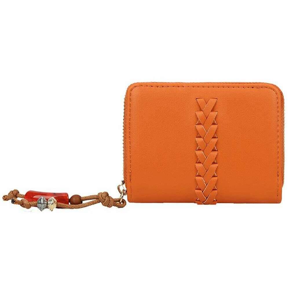 Introducing this women's woven detail purse by Long and Son, it is manufactured from 100% polyurethane in a orange colour. It measures 9cm(height) x 12cm(width) x 2.5cm(depth). All the purses come complete with long & son packaging. The Long and Son Woven Detail Purse - Orange will become your everyday companion, complimenting your bag and your style when shopping. This small and compact purse features great storage with 12 small sections, a card holder and a zipper pocket. The zippered closures ensure this purse is secure without the fear of losing your valuables. To top it all this purse features RFID blocking technology to prevent unauthorised scanning of your information. Complete with a charm zip pull and subtle gold hardware throughout.